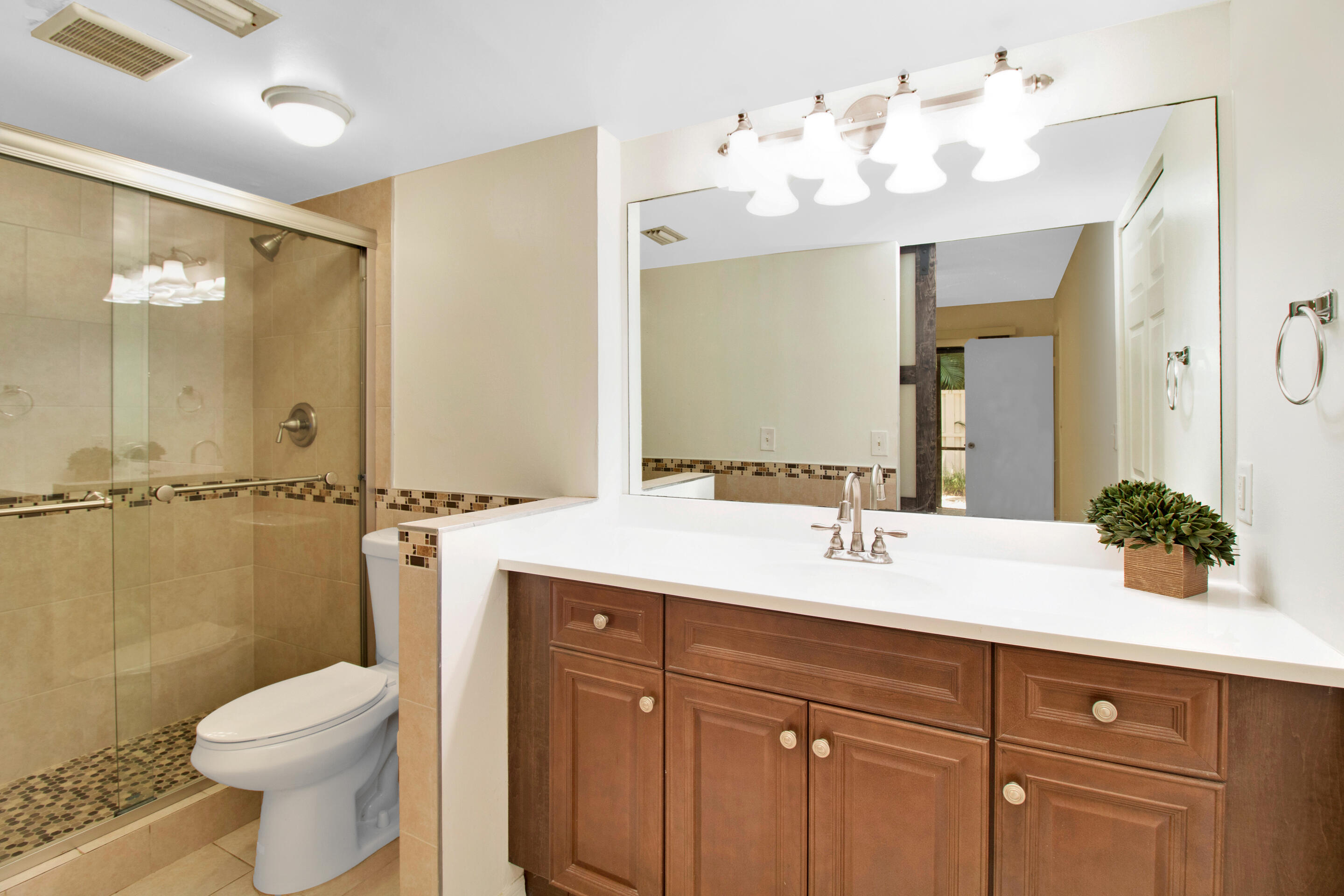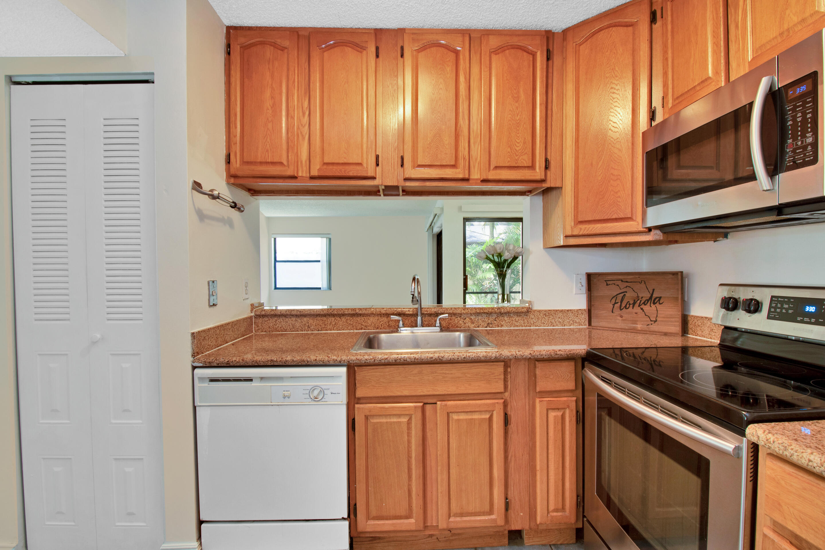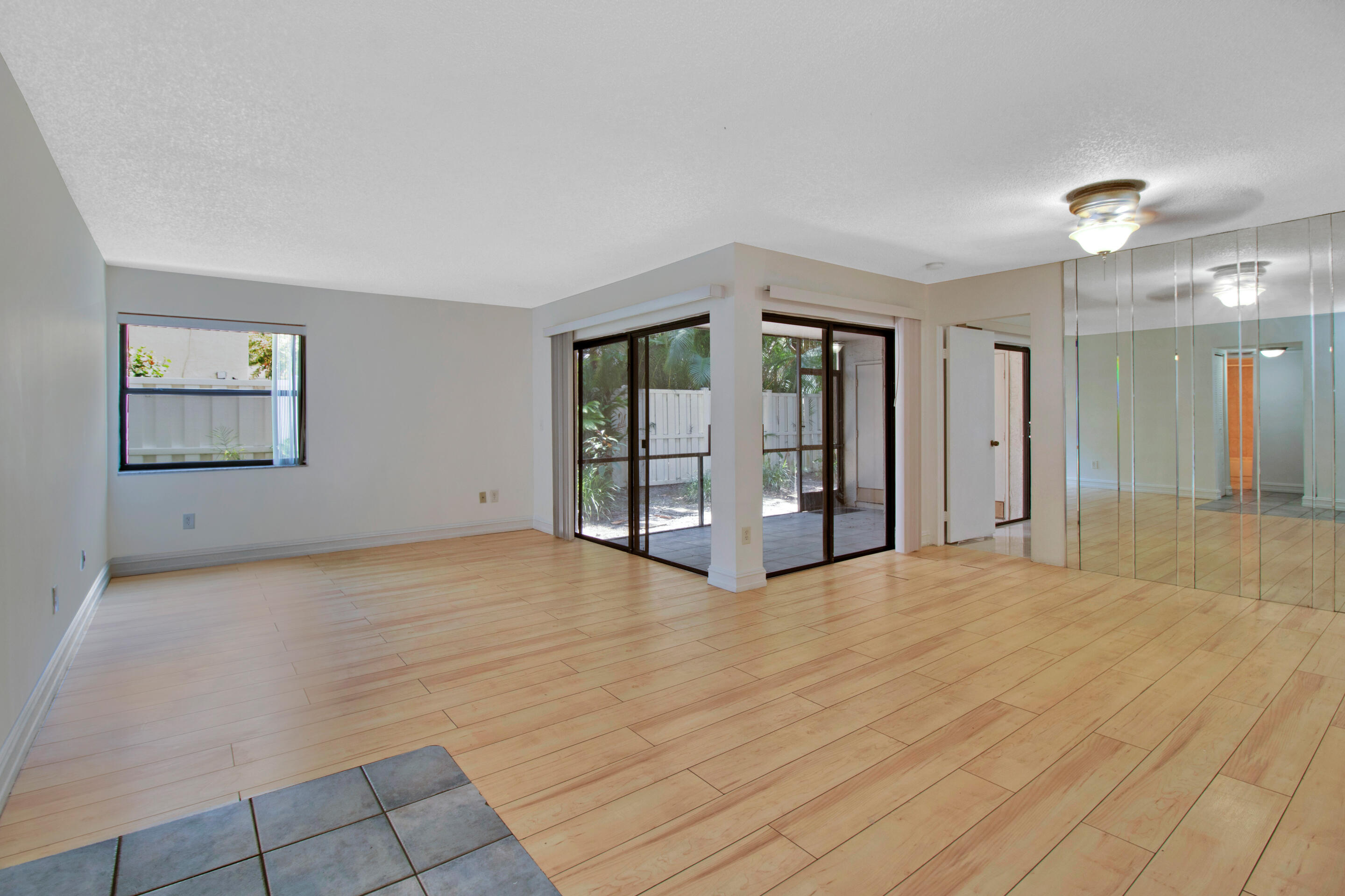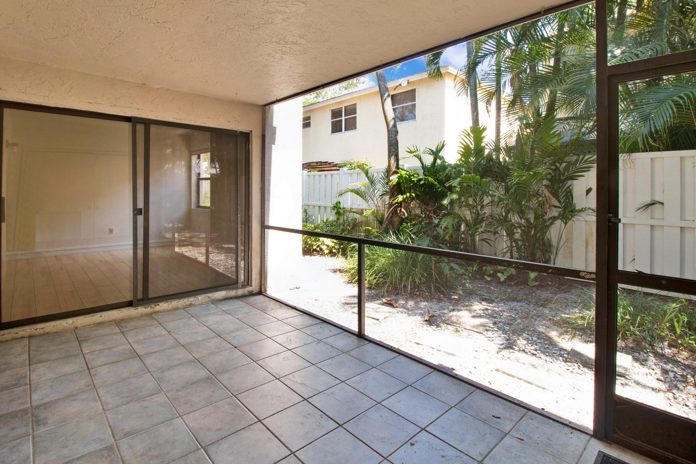 Now is your chance to make this 3 bedroom, 2 bathroom condo in the desirable community of Quatraine at Jacaranda yours! Located on the first floor, large living and dining room with a split bedroom floor plan. Spacious screened in patio with full washer / dryer. Primary bathroom updated with a barn door. Close to the community pool and playground. Shopping, dining, and major highways nearby. No rentals for two years.
