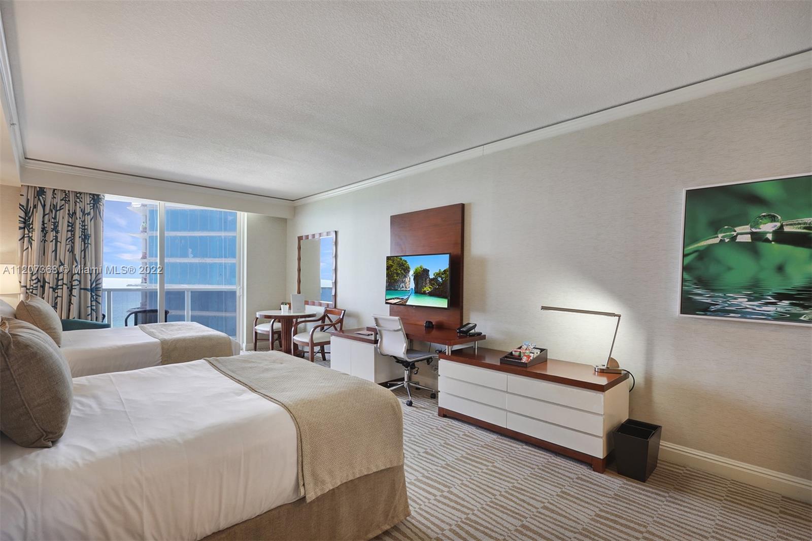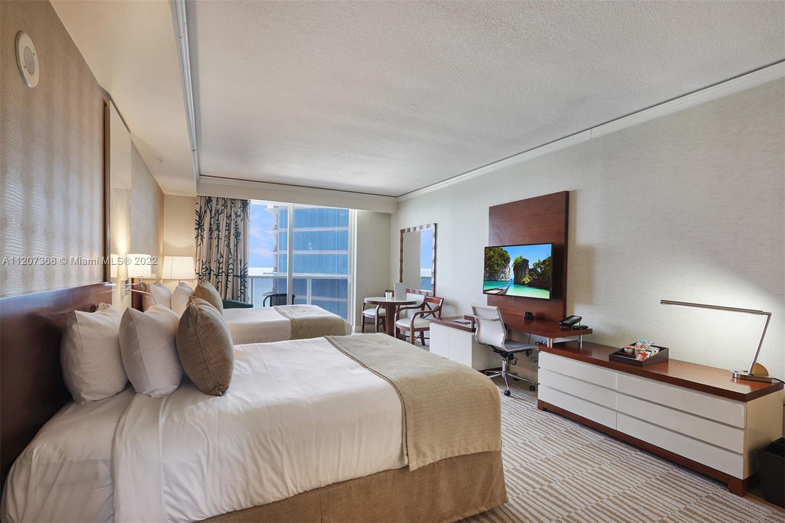 SPECTACULAR OCEAN & BEACH VIEW STUDIO AT EXCLUSIVE TRUMP INTERNATIONAL SONESTA BEACH RESORT. BEAUTIFUL BEACH, POOL, STATE-OF-THE-ART GYM & SPA, RESTAURANT, HOTEL LOUNGE, CONCIERGE & VALET. FULLY FURNISHED WITH SITTING AREA, FLAT TV, OFFICE DESK, AND KITCHENETTE. GREAT FOR PASSIVE INVESTOR / VACATION USER. ASSOCIATION INCLUDES VALET PARKING, INTERNET, CABLE TV, TELEPHONE, WATER, TRASH, ELECTRICITY, POOL SERVICE, 24H SECURITY. MULTIPLE BARS AND RESTAURANTS, STORES. PERFECT HOME FOR VACATIONS AND INVESTMENT WHILE YOU DON’T USE IT. DELUXE STUDIO COMES FULLY FURNISHED AND IS CURRENTLY IN THE HOTEL PROGRAM. EXCELLENT INCOME-PRODUCING PROPERTY. SUNNY ISLES BEACH HAS A COURTESY SHUTTLE THAT WILL TAKE YOU AROUND SUNNY ISLES AND AVENTURA MALL. CLOSE TO AVENTURA MALL AND BAL HARBOUR SHOPS.