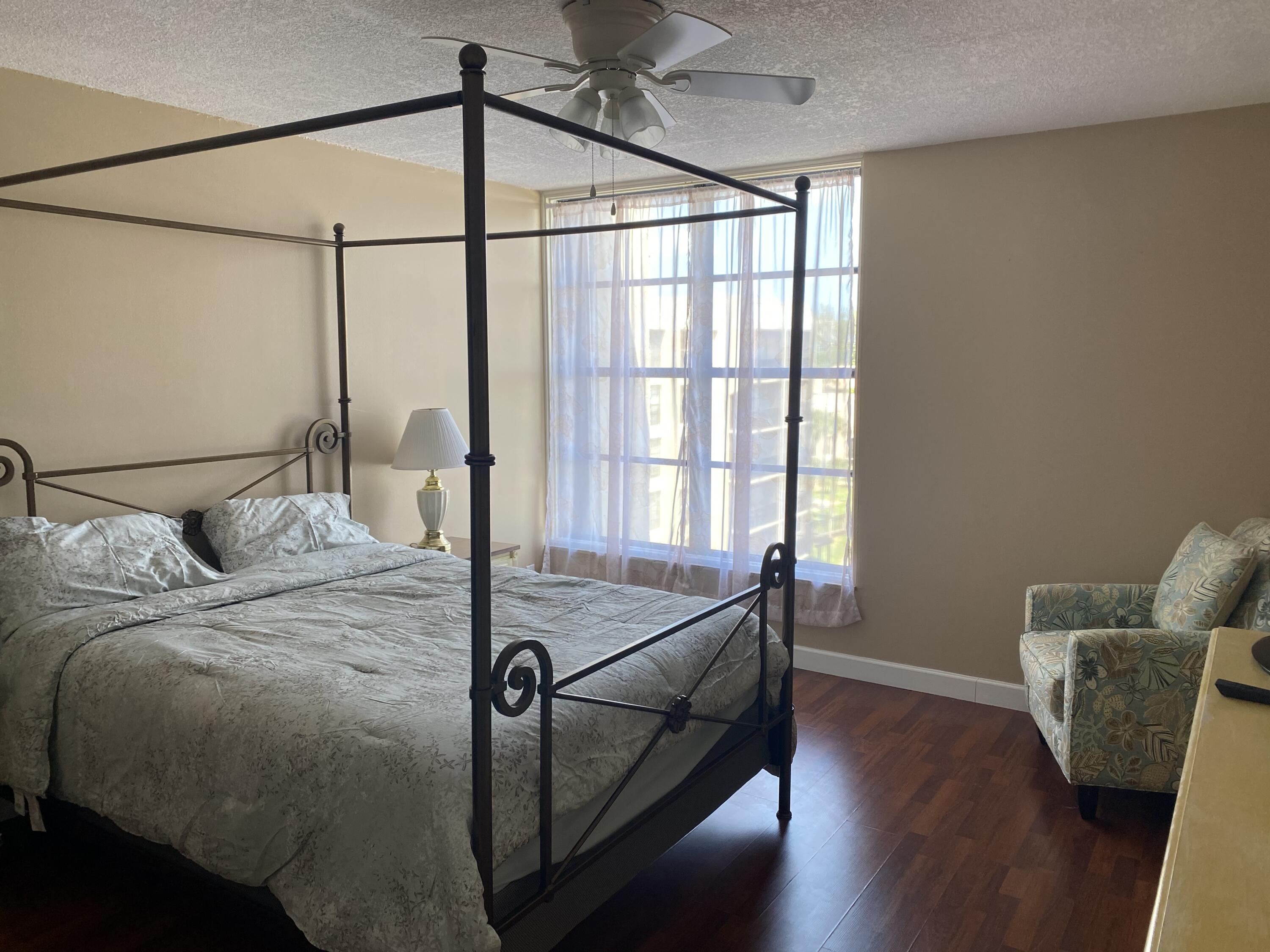 INVESTOR SPECIAL!! TENANT IN PLACE!! Fully furnished, turn key, 2 bed 1 bath, penthouse in the highly desired Boca Bayou in East Boca, is up for sale. The unit was freshly painted in November 2021 and a new AC was installed in 2020. Just installed in April 2022, motorized window treatments on the patio sliding doors and in the master bedroom. There is tile in the kitchen, living room and dining room and wood laminated floors in both bedrooms. The kitchen has stainless steel appliances and recess lighting. There is a kitchen bar that you or your guest can sit at while cooking in the kitchen. The unit also has a wine cooler to keep your wine at the right temperature. From the kitchen, living room, dining room and master bedroom, you will have amazing sunrises to see coming from the Eas