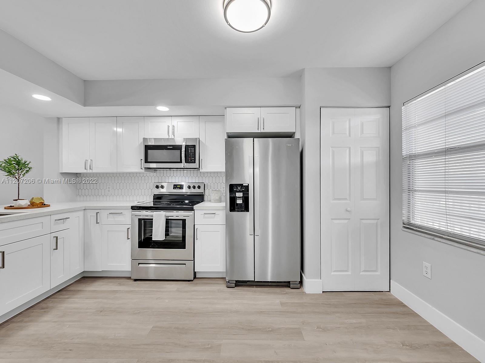 This gorgeous bright, modern, and completely remodel condo would welcome you upon entering the front door into a beautiful concept. 2 Bedrooms, and 1.5 Bathrooms. This O model offers a relaxing welcoming entrance from the kitchen into the living/dining room. The kitchen has been tastefully upgraded with soft closing white cabinets, white quartz, modern backsplash, and stain-steel appliances, laminate waterproof flooring, smooth walls and ceiling finishes, and very modern bathrooms. Washer & dryer in the unit. Be part of the Best 55+ community in the area offering resort-style amenities with numerous options to stay socially and physically active. come and enjoy endlessly resort amenities!