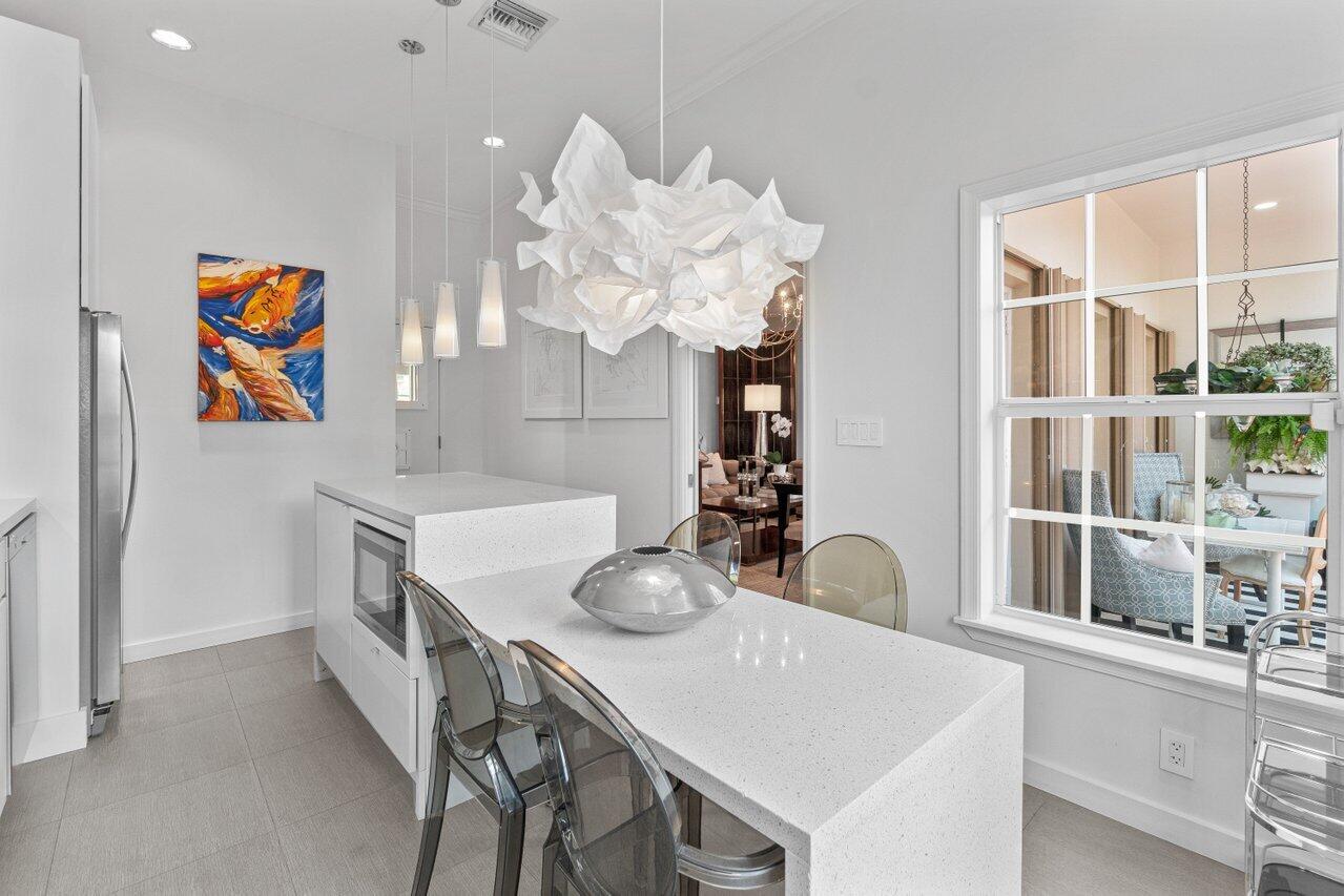 A rare opportunity to own a one-of-a-kind, jewel box home in the award-winning development of CHARLESTON PLACE has just opened up. Voted Boca Raton's ''Most Charming Neighborhood'' in numerous publications & magazines, this gorgeous one-story home with garage opens up to a large European-style brick courtyard and covered patio. This property is surrounded by established hedges and greenery and comes with the space to build your own private splash pool. This classic yet modern Paris-style apartment has been professionally designed and meticulously updated. It features 10-ft ceilings, impact glass windows, a hurricane-rated front door, and recessed lighting with Lutron dimmers in all rooms for perfect evening ambience.