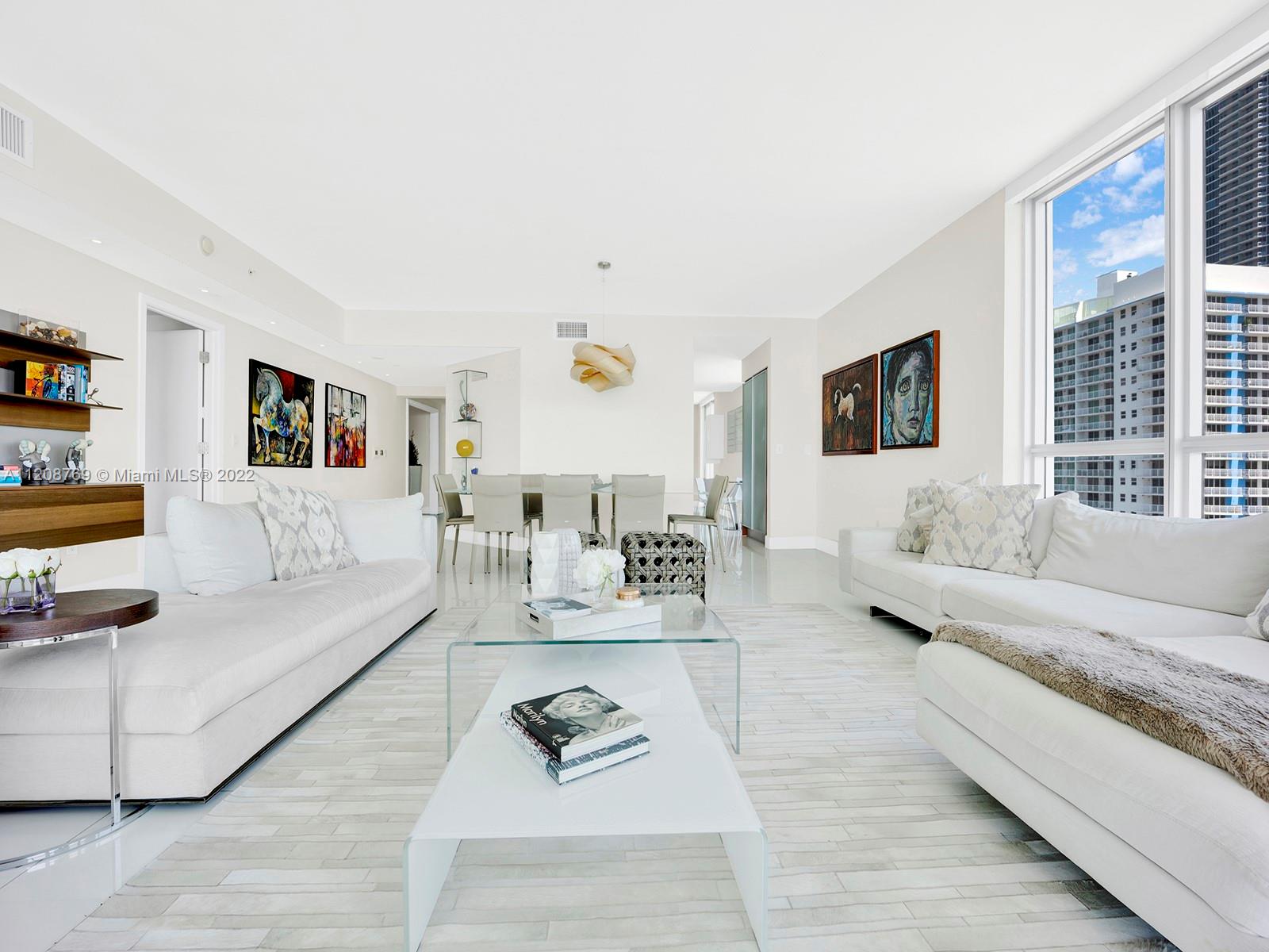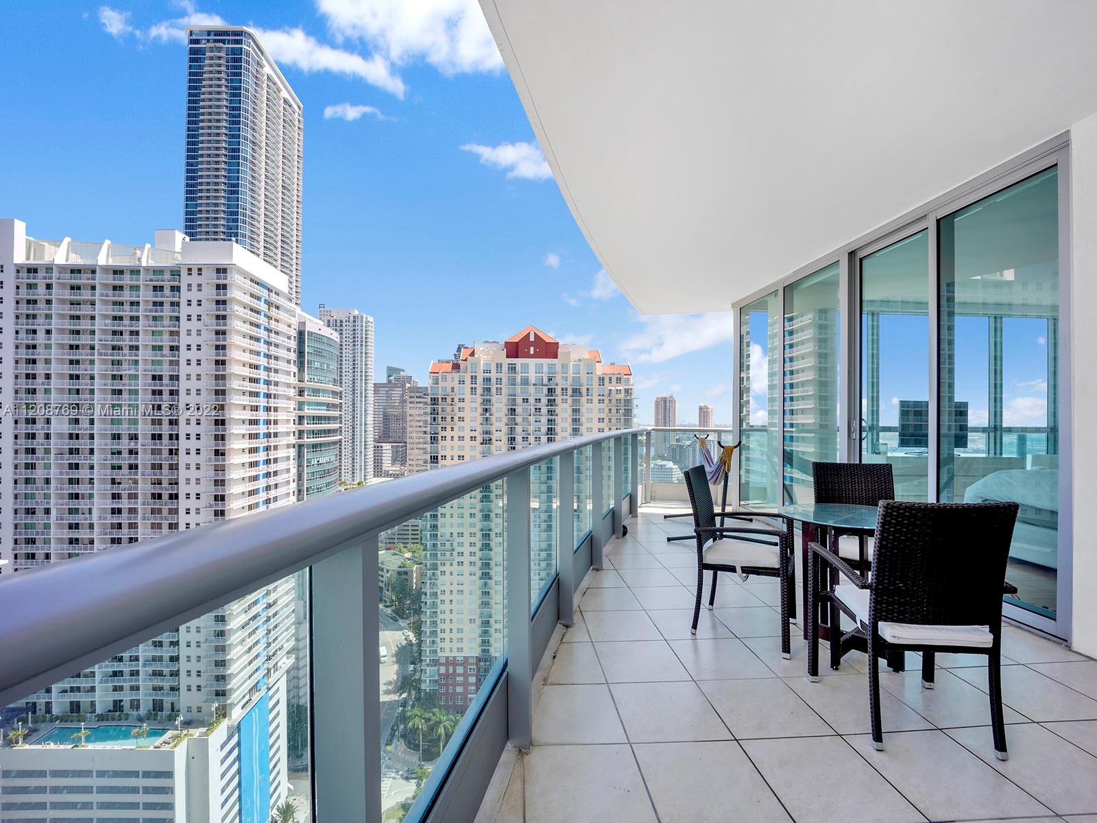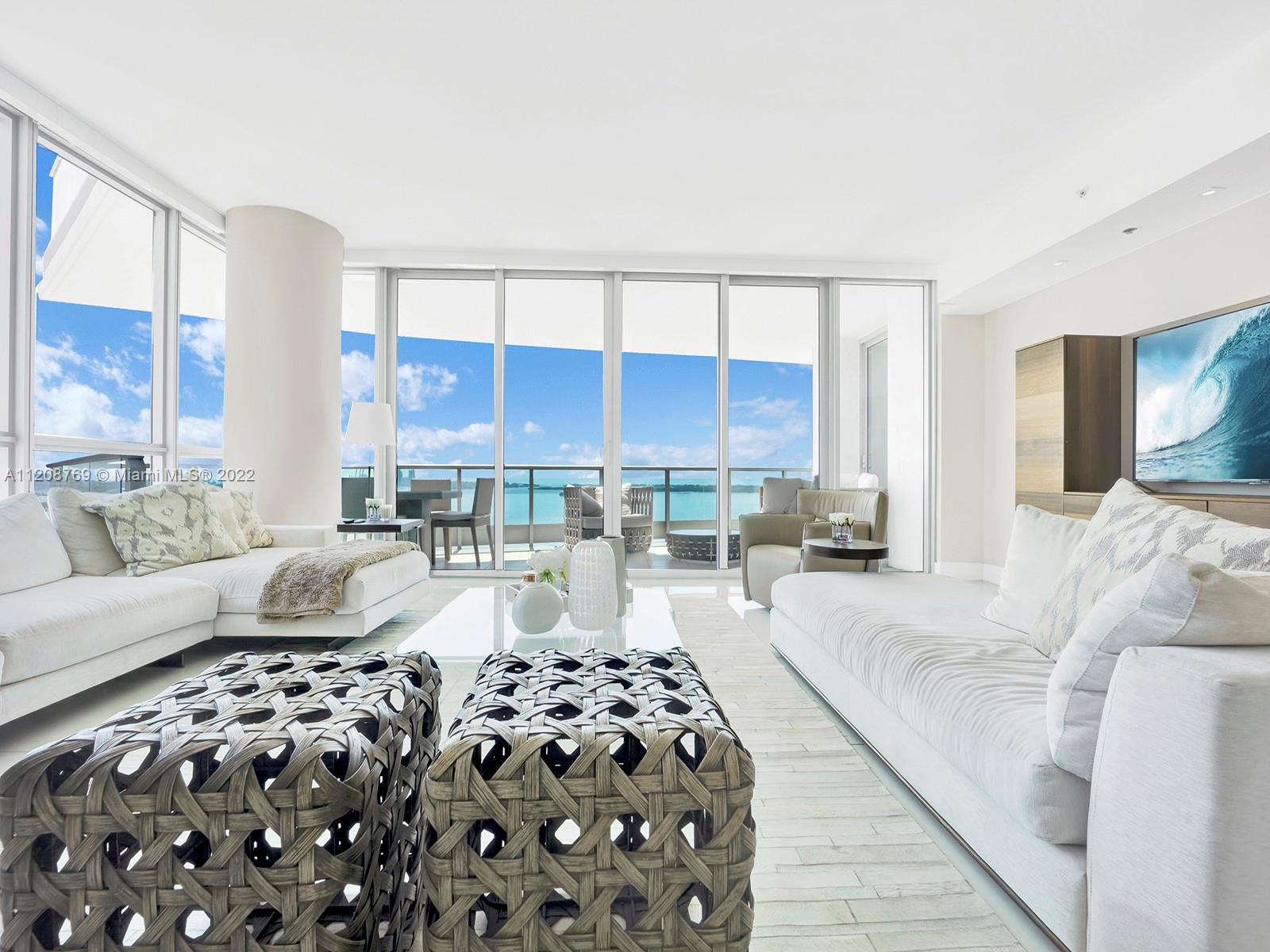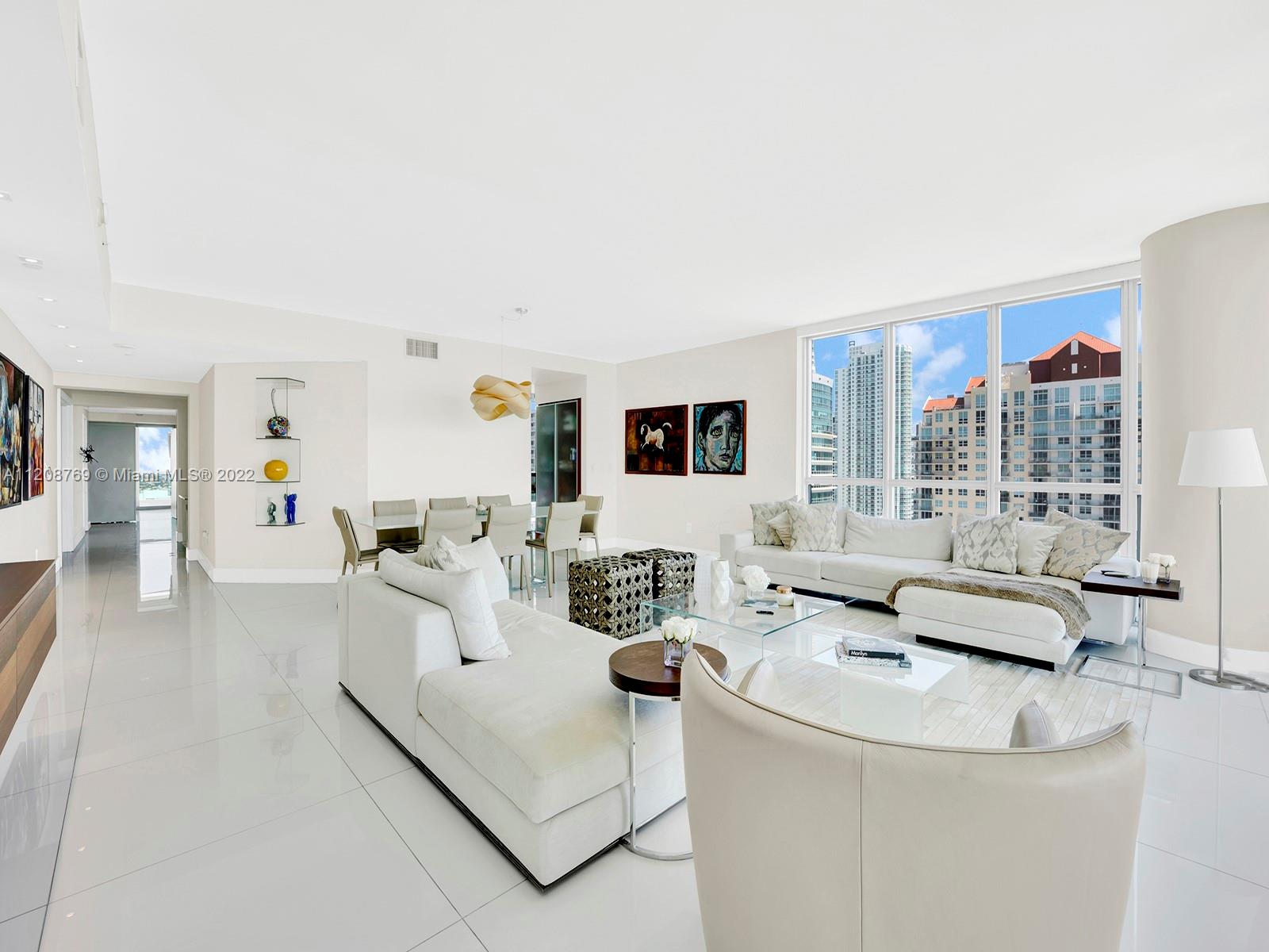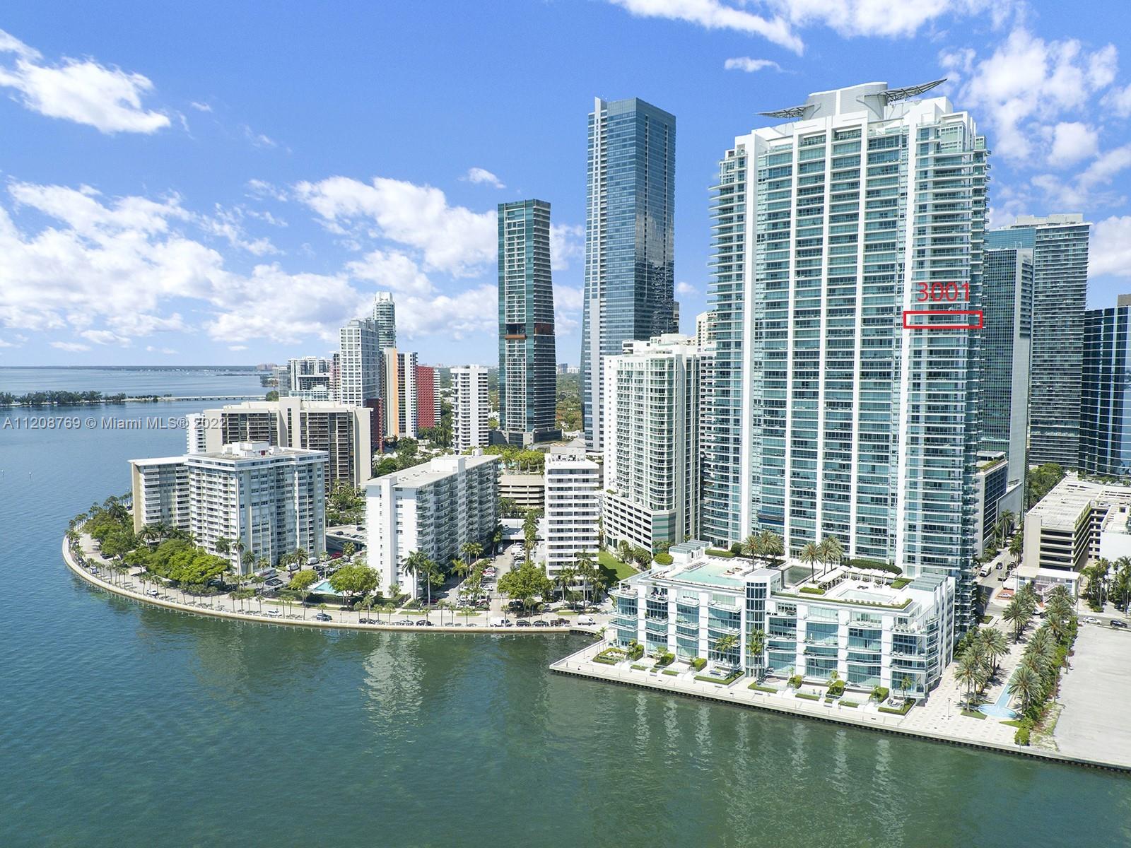 Fabulous flow through residence with expansive Biscayne Bay and ocean views to the east and Brickell skyline views to the north and west. Sunrise and sunset terraces. Master bedroom with sitting area and his/hers everything (walk-in closets, bathroom vanities, water closets). All other bedrooms with bathrooms ensuite. Private elevator opening to foyer entrance. Kitchen with breakfast area and family room beside. Living and dining surrounded by water views. Laundry room with substantial storage space plus extra storage unit under AC in building. Three parking spaces. A really comfortable residence to call your home!
