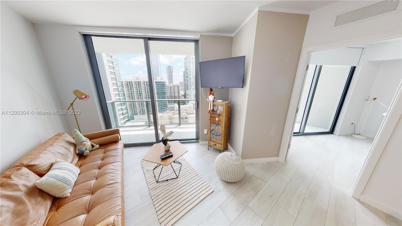 Be the FIRST to live in this unit (COMES FURNISHED). It's has never been lived in full time. This modern One-bedroom apartment is located in the most trending neighborhood in Miami! Edgewater is just minutes away from Design District one of the most luxurious shopping and lifestyle destinations.This unit has a 1 bedroom + DEN and 1.5 bathroom. Unit featuring BOSCH appliances, washer/dryer inside, AUTOMATIC BLINDS, BUILT IN CLOSETS, UPGRADED FLOORS. Condo has incredible designer finishes by Karim Rashid including. Many amenities: tennis court, pool, BBQ grills, lounge beds, spa, sauna, treatment rooms, fitness center, movie room, billiards, kids room, club room and STUNNING 46th floor pool deck! Unit (AS IS W/ ALL WEST ELM FURNITURE )can be rented as many as 12 TIMES PER YEAR|EASY TO SHOW|