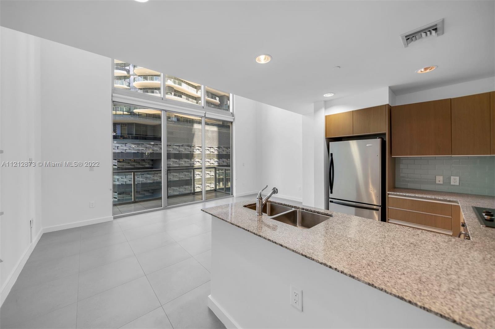 This spacious open concept 1 bedroom/1.5 bathroom two-level loft boasts 1128 sqft, modern gray porcelain throughout the unit, soaring high ceilings and floor to ceiling glass windows that offer a beautiful view of the Miami sunset. The kitchen is modern and stylish, with stainless steel appliances, Italian style custom designed cabinetry, granite countertops, turquoise subway tile backsplash and a very charming and functional layout. Ideally located within walking distance to Mary Brickell Village, the Metrorail station and just minutes to Coconut Grove, South Beach, the Miami International Airport and the I95.