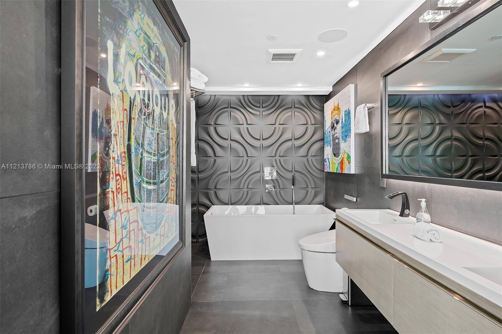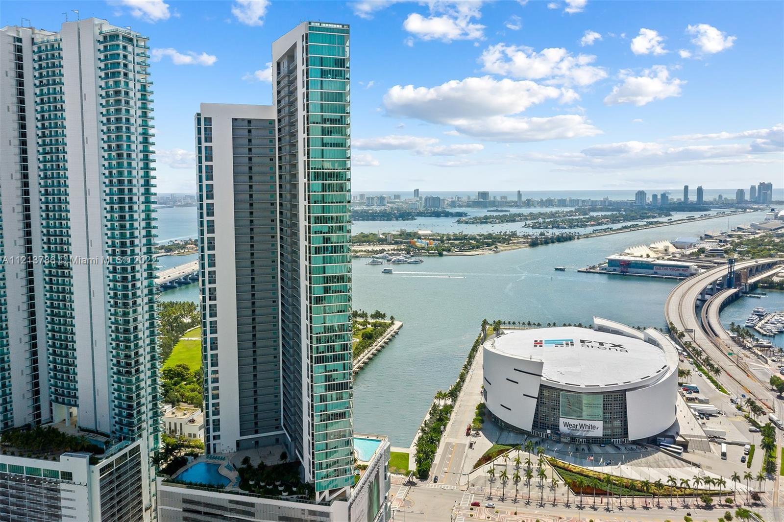 Welcome to Marina Blue at 888 Biscayne Blvd. This stunning 39th-floor unit is 100% remodeled with over $200K in tasteful upgrades. The architectural wall elements and top-of-the-line fixtures and finishes lend a sleek Miami vibe to the open concept loft-style floorplan. This kitted-out Smart Home controls blinds, lights, surround sound, and TVs including a ceiling dropdown TV in primary bedroom area. The compact Euro-style kitchen includes a wine fridge. Flooring is dark stone throughout. Enjoy unobstructed views of the Bay, Marina, Bicentennial Park, and the Miami Beach skyline all the way to South Beach from your private balcony. Walk to Museum Park and the AA Arena. Amenities include two pools, spa, exercise room, putting green, indoor and outdoor lounge areas, valet parking and more.