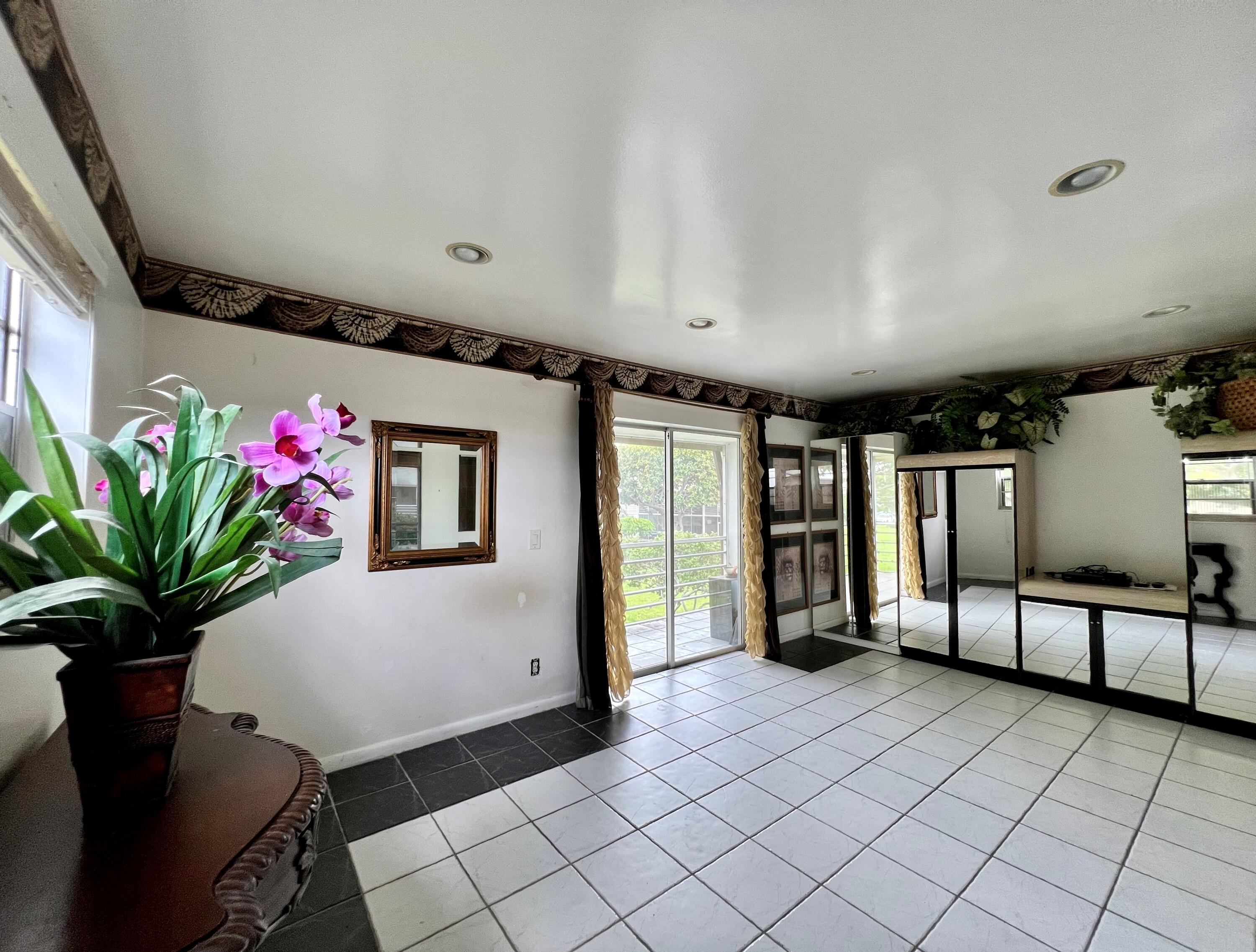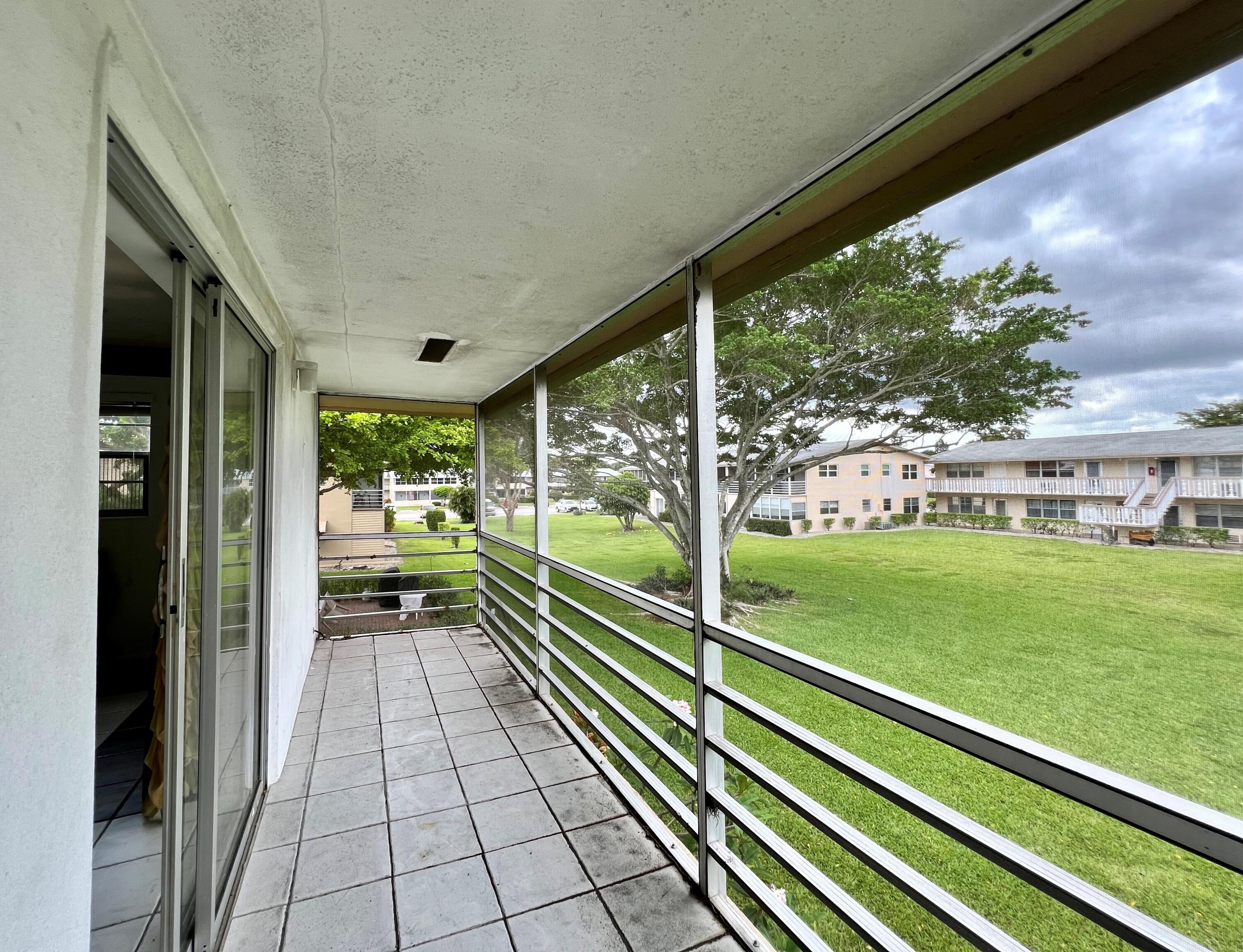 A terrific spot in 55+ Century Village! Desirable CORNER second floor unit with an open plan. Central AC. Tile floors. Popcorn removed from ceilings. Spacious bathroom with soaking tub and tiled step-in shower. Long screened lanai. Building has a new roof and a private resident only patio. Building is tucked away yet very close to the Dorchester pool! Property is sold AS IS and furnished as shown (excluding the wood table in bedroom). Century Village is a 55+ community with so much to offer...