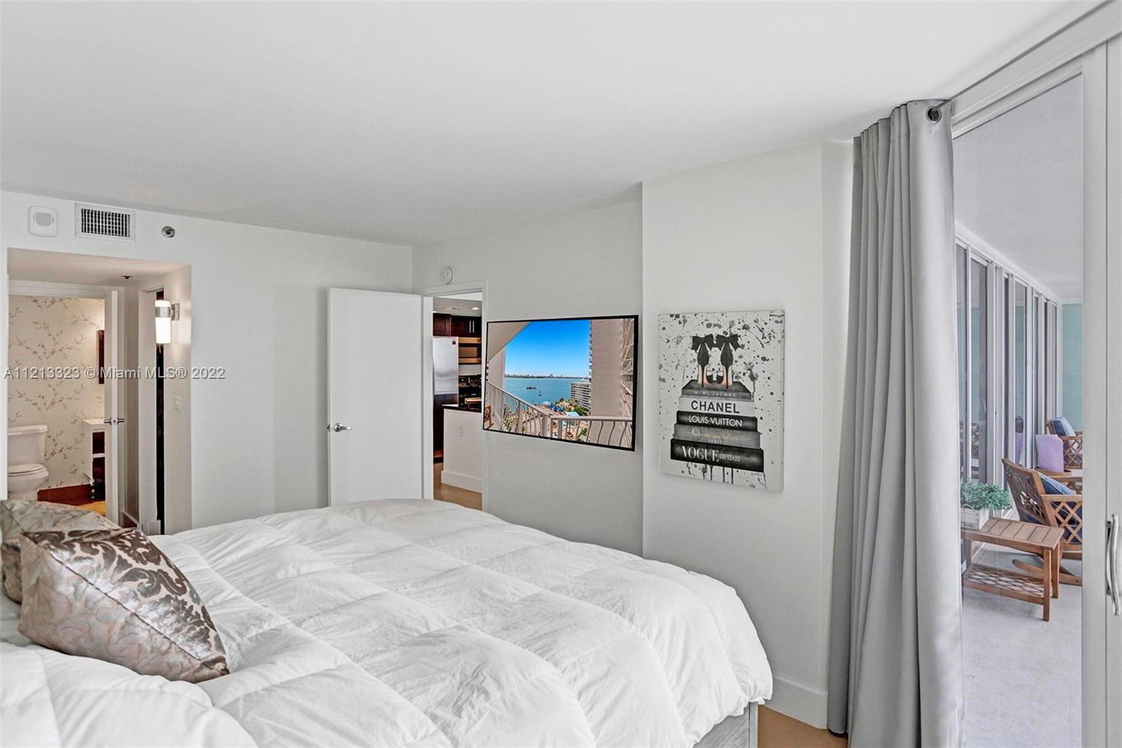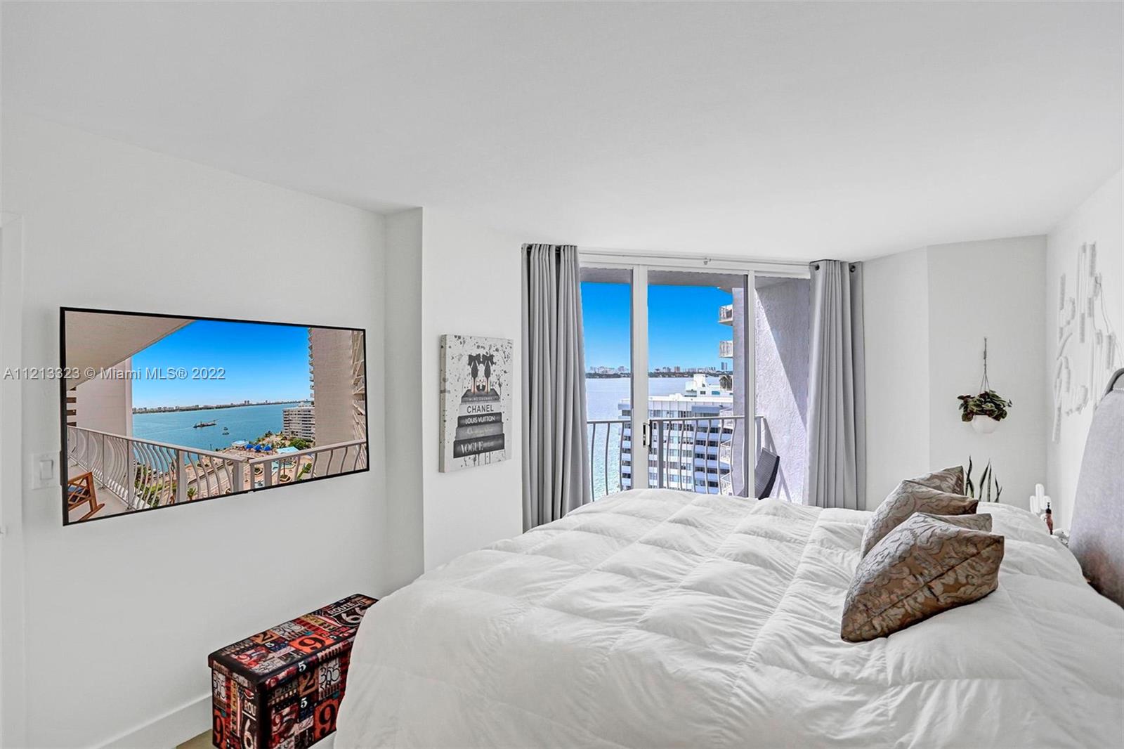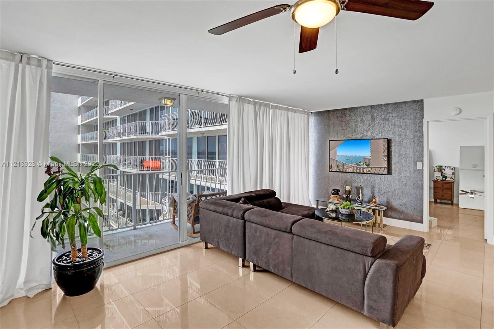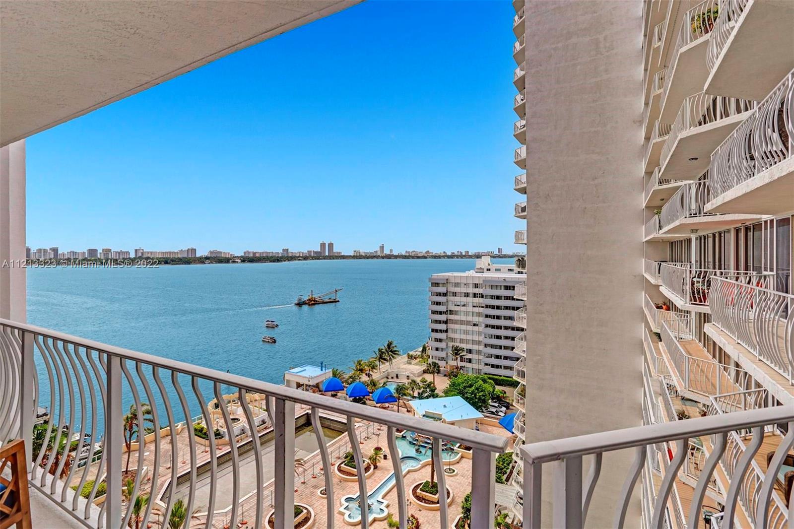 Grandview Palace bayside Pool is about to reopen! Sexy residence features 25 inch porcelain floors throughout, newer kitchen + bathrooms & exquisite bay views from most rooms. Price includes all the furniture. The 24 Line is the SE facing corner unit showcasing bay and pool views. Development offers many top notch amenities including refurbished bay front swimming pool, restaurants, doorman/ security, dry cleaning services and marina. North Bay Village is the perfect central location close to all the action. The island is located between Miami Beach & Downtown Miami/ Design District with close proximity to Bal Harbour Shops, equidistant to both Miami & Fort Lauderdale airports. Grandview is walking distance to shops and waterfront restaurants such as Benihana & Shuckers. Easy to show.