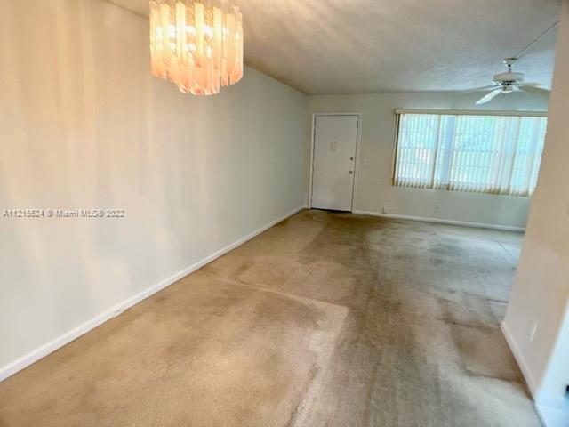 Great opportunity in Century Village, 1 Bedroom, and 1.5 bathroom unit. 2nd floor location gives a very private view of an ample garden and pool. Freshly painted and owner will give a credit to replace the carpet. Very easy access and vicinity to laundry facility and elevator plus all the amenities Century Village has to offer. A must see! (2 year ownership before rentals are allowed).