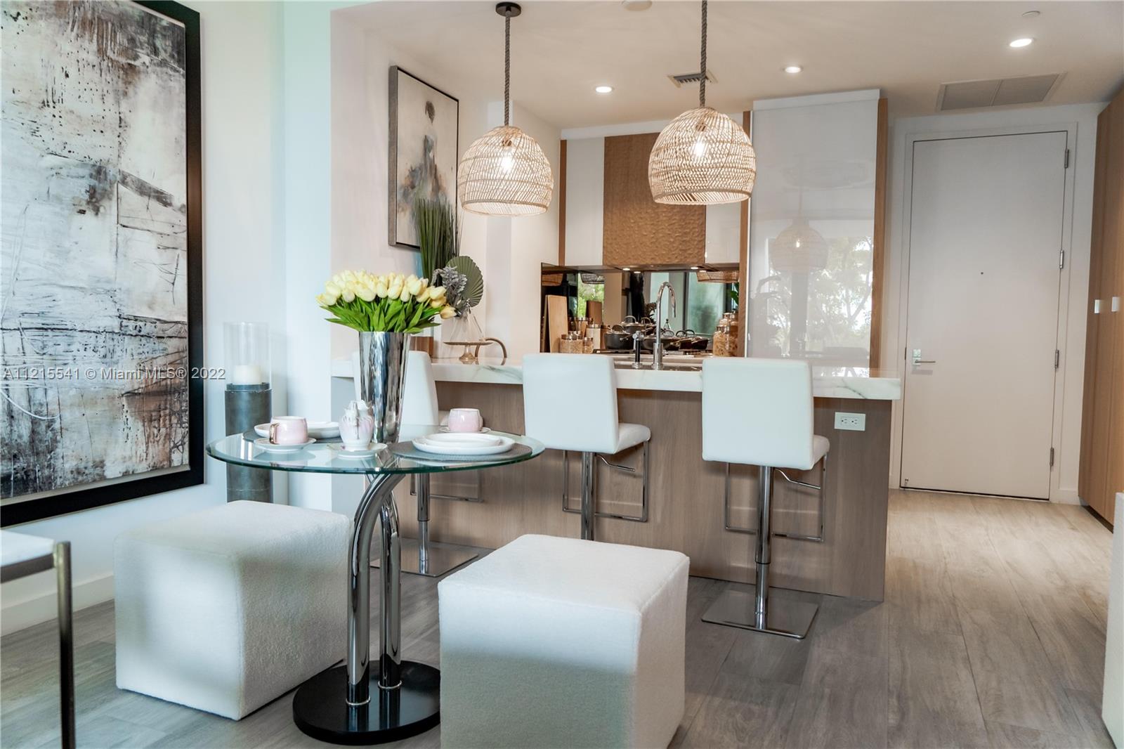 1 bedroom plus den, 1 full bath unit located in the lavish Club Residences at Park Grove. This unit is equipped with a European inspired kitchen entailing Sub-Zero and Wolf appliances, Italkraft cabinetry, gas cooktop, marble countertop with mirrored backsplash, double bathroom vanity with backlit mirror, walk-in shower, Italian porcelain flooring throughout, blackout shades, and a private terrace with glass walls overlooking lush greenery. One reserved, garaged parking space. Experience five-star amenities; rooftop pool deck, cabanas, BBQ pavilions, movie theater, fitness centers, spa, on-site restaurant, business center, children’s play area, and more. 24-hour concierge, valet, and security.