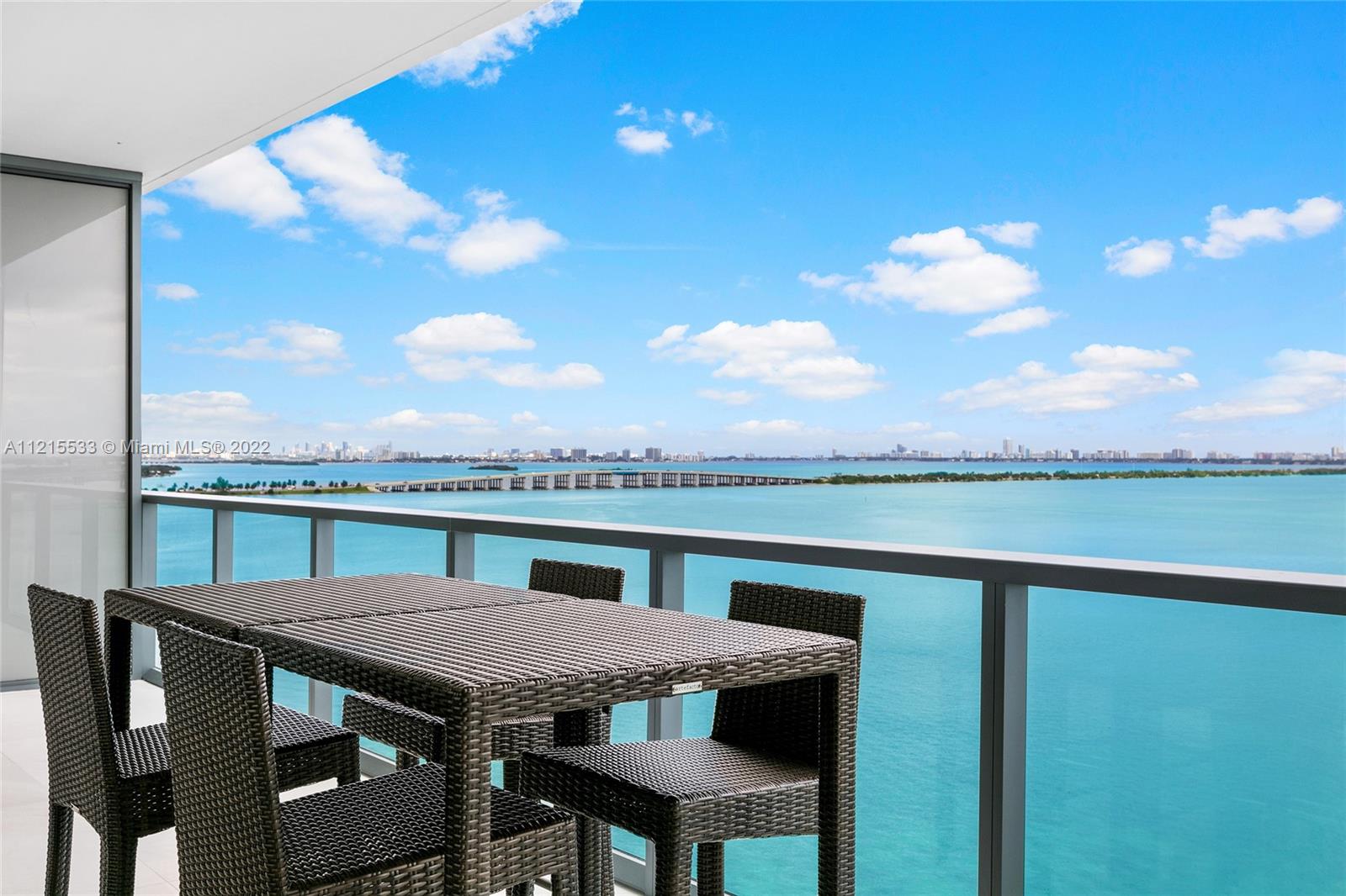 This beautiful Southeast corner unit on the 11th floor offers 4BR/4.5BA & magnificent sunrise & serene sunset views. This flowthrough unit features 2,743 SF with limestone floors throughout. The spacious principal suite off the living room faces east over Biscayne Bay & boasts an elegant bathroom w/walk-in shower, sunken soaking tub. Large terraces on both the East & West side of the unit. Building offers incredible amenities, bayfront lounge, two pools, fitness center w/state-of-the-art equipment, yoga & massage rooms, steam/sauna, concierge, valet parking & more. Great location just minutes to Design District, Brickell, Performing Arts Center, Midtown, Miami Beach, fine dining, shops, and Miami International Airport.