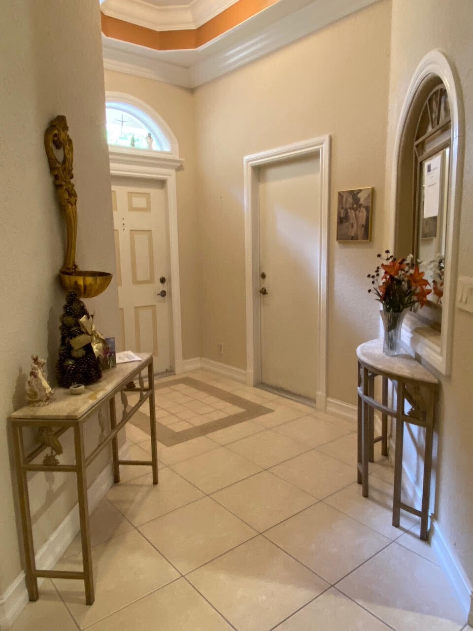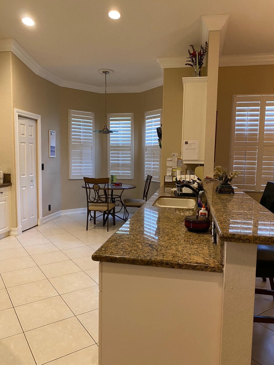 Contemporary spacious villa with only 2 units attached. Soaring high ceiling open the living room, dining area to the kitchen. Kitchen has granite countertops with eat in kitchen area.2/2 with Den . Tax roll reads 3 bedrooms witch can be converted easily to 3rd bedroom. Screened in private patio. Accordion hurricane shutters. Plantation shutter window treatments. Master bathroom has garden tub with separate shower, water closet and double sinks.