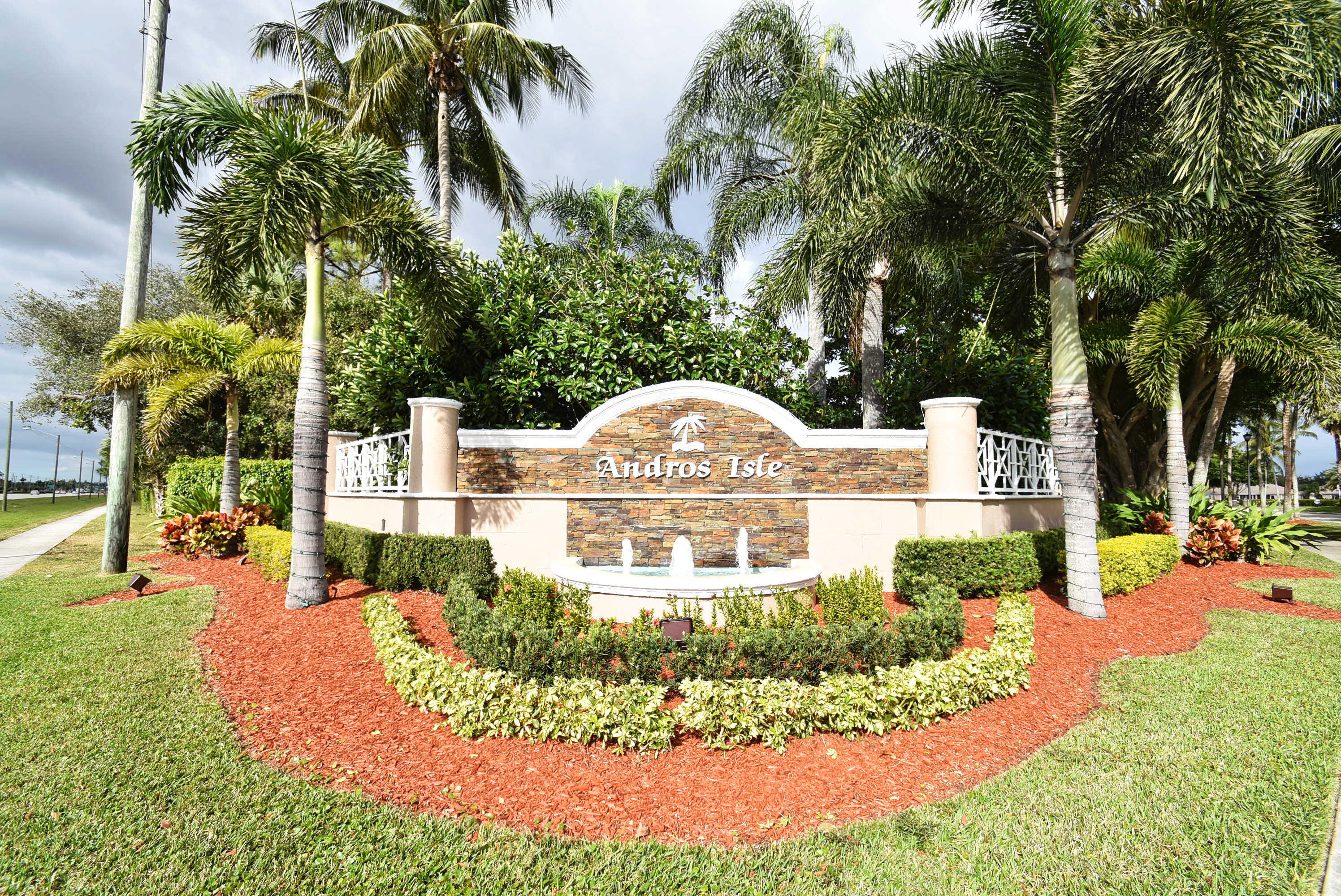 Welcome to the Beautiful Gated community Andros Isle.This lovely Villa on the water is the Original Model Home featuring Crown moldings and fine Craftsmanship. A serene screened in front porch welcomes you. This Villa has two large bedrooms and a newly carpeted den. Enjoy stainless steel appliances and a lovely breakfast nook. Enjoy eating dinner with friends in your incredible dining room. This large open floor plan has vaulted ceilings throughout. Enjoy a peaceful nights sleep in the Primary room overlooking the water and private entrance to the patio. The primary room welcomes all your fashion with an over sized closet.There are Hurricane shutters throughout and a nice 2 car garage. POA Pays for Roof & driveway cleaning.As well as fresh exterior paint every 5 years.