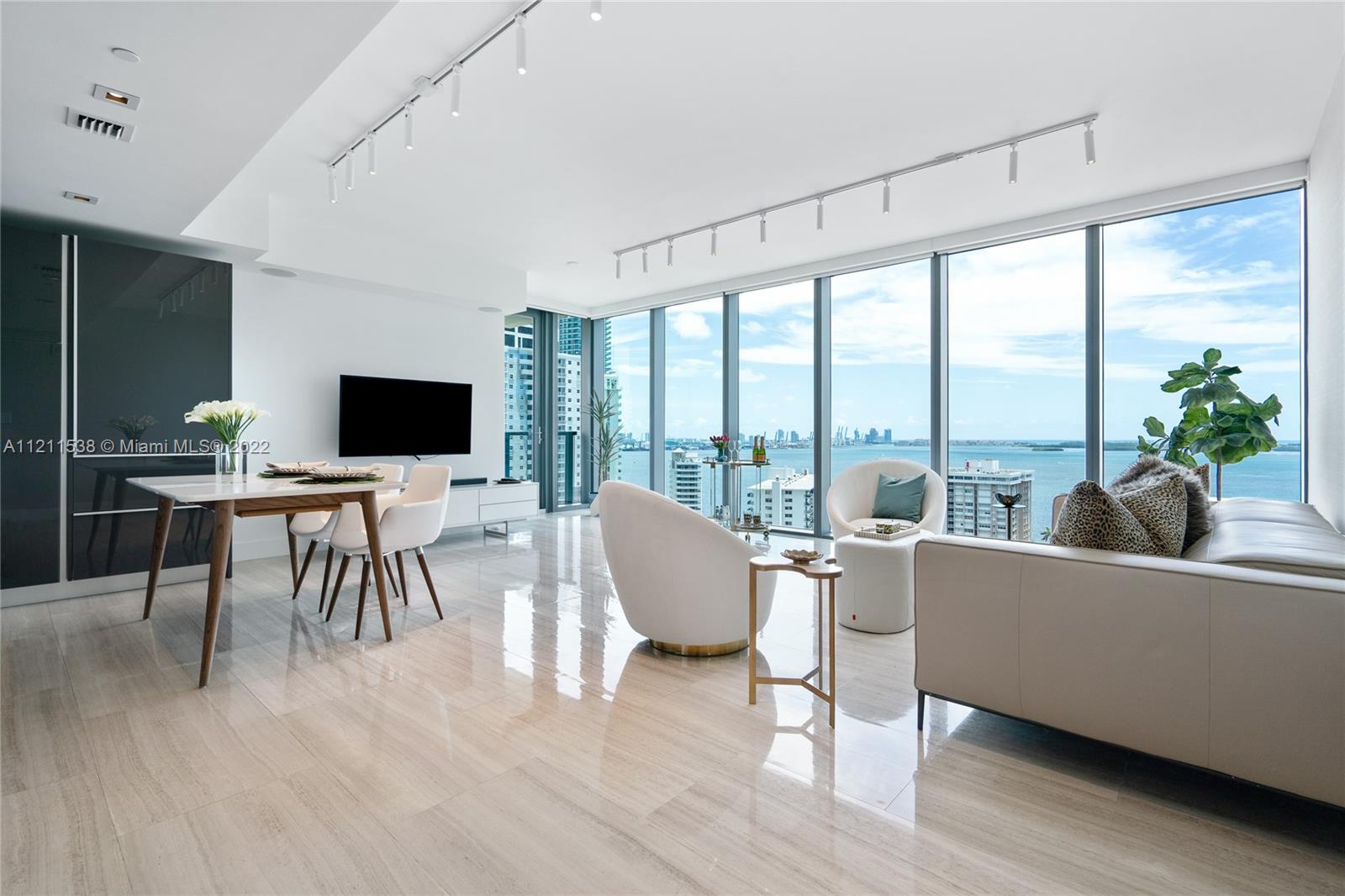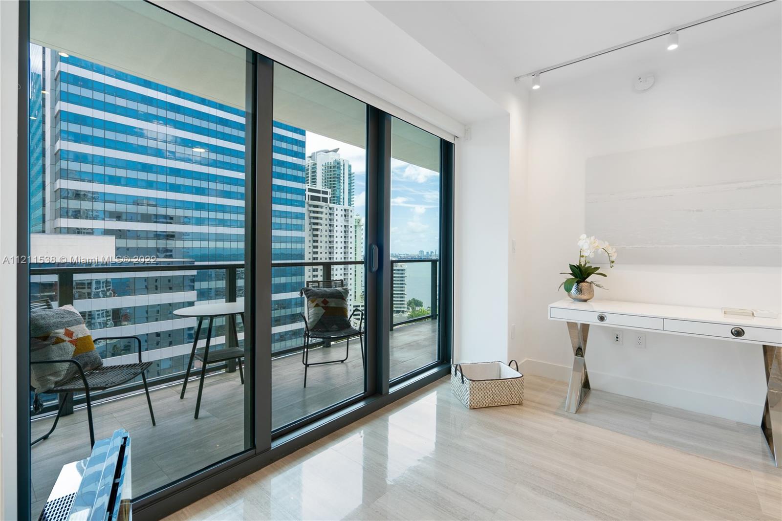 Welcome home to Brickell’s most exclusive resort style building. Walk inside this immaculate and pristine coveted 01 line corner unit with open bay and city views. This 2 bedroom/2.5 bathroom unit is turnkey (furniture negotiable) with upgrades such as electric blinds throughout, built-in closets, LED ceiling lighting with dimmers, Haiku Smart ceiling fans, alarm system, and Wolf/Subzero appliances. Enjoy serene and stunning sunrises and sunsets from their beautiful expansive pool deck with infinity Edge pool, BBQ, State of the art gym and 24hr concierge, security and valet and extensive services from the ease of your Echo app. Brickell’s hottest boutique gem!