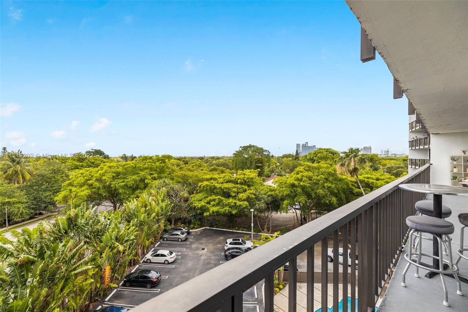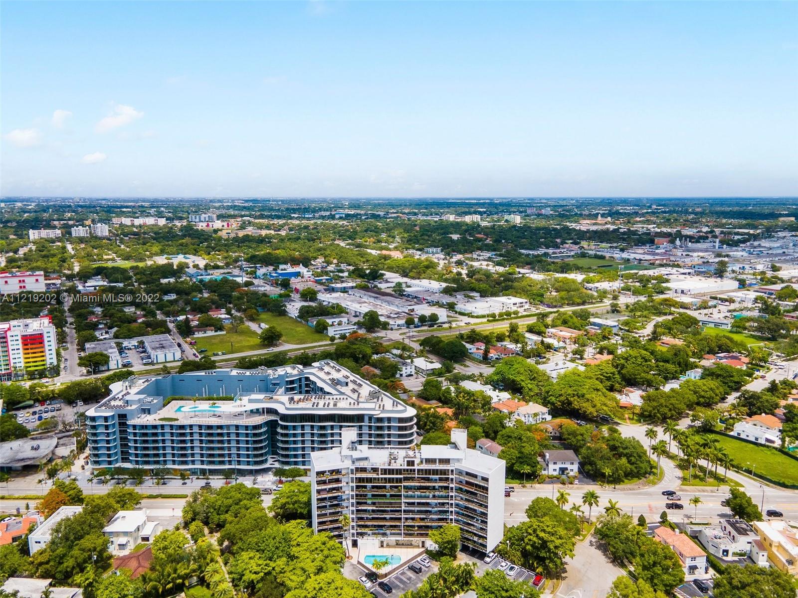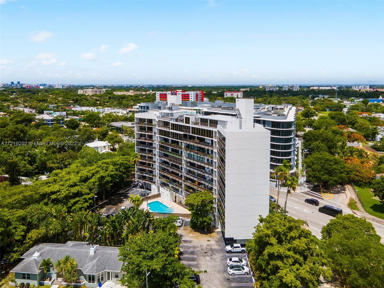 RARELY AVAILABLE! This Spacious 2 beds 2.5 bath Industrial style condo unit is nestled in the trendy neighborhood of the Mimo District and overlooks the treetops of Morningside, a view that will never be obstructed. Floor to ceiling windows, 6’ deep balcony, an abundance of closet space, with 2 ASSIGNED PARKING SPACES. The Flats at Morningside is an amazing place to live or legally rent to guest through AIRBNB and VRBO platforms. The building offers key entry, gated parking, a pool, a rooftop sundeck with panoramic water/city views, and a sauna. Across from new apartments w/ ground-level retail, Chica’s Dining, Andiamo Pizza, and other boutique shops. Minutes to Design District, Wynwood, beaches & airports. Walk to tennis courts, kayak, & paddle board at Morningside or Legion Parks