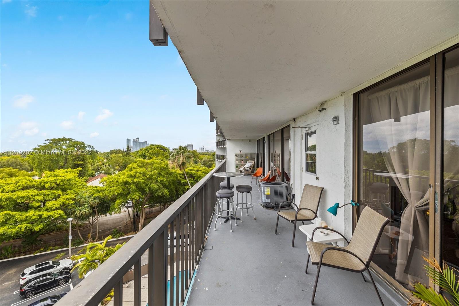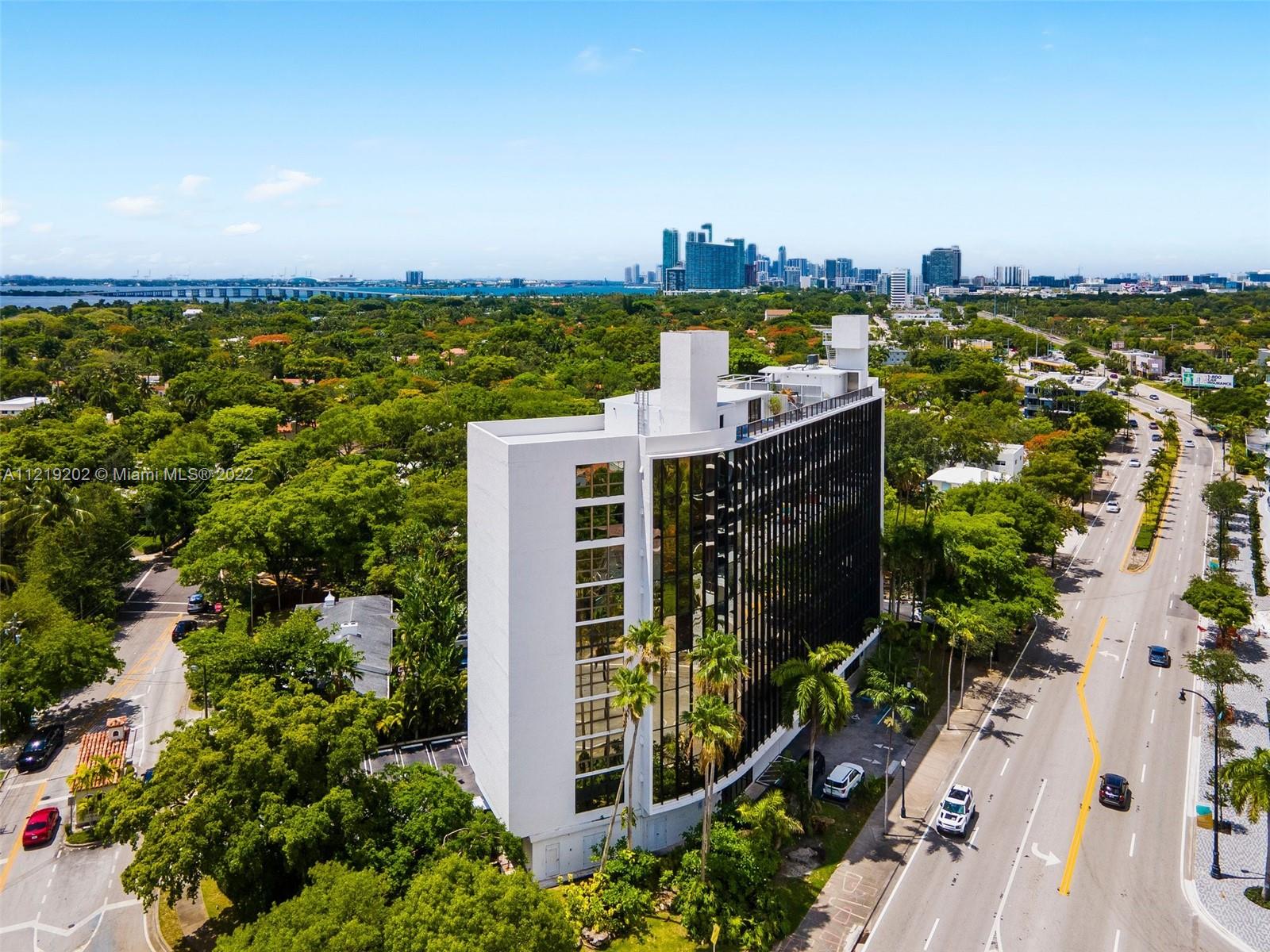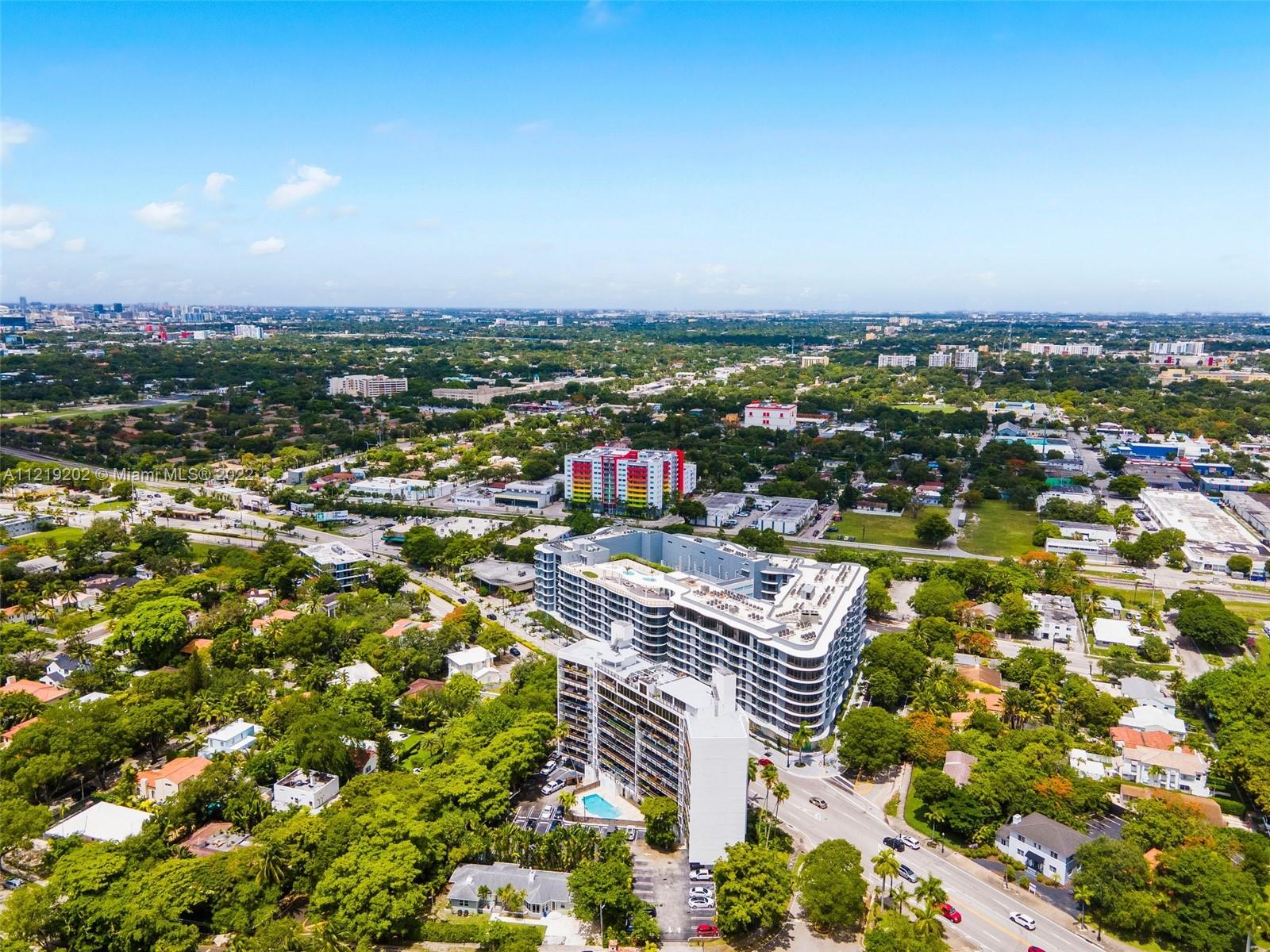 RARELY AVAILABLE! This Spacious 2 beds 2.5 bath Industrial style condo unit is nestled in the trendy neighborhood of the Mimo District and overlooks the treetops of Morningside, a view that will never be obstructed. Floor to ceiling windows, 6’ deep balcony, an abundance of closet space, with 2 ASSIGNED PARKING SPACES. The Flats at Morningside is an amazing place to live or legally rent to guest through AIRBNB and VRBO platforms. The building offers key entry, gated parking, a pool, a rooftop sundeck with panoramic water/city views, and a sauna. Across from new apartments w/ ground-level retail, Chica’s Dining, Andiamo Pizza, and other boutique shops. Minutes to Design District, Wynwood, beaches & airports. Walk to tennis courts, kayak, & paddle board at Morningside or Legion Parks