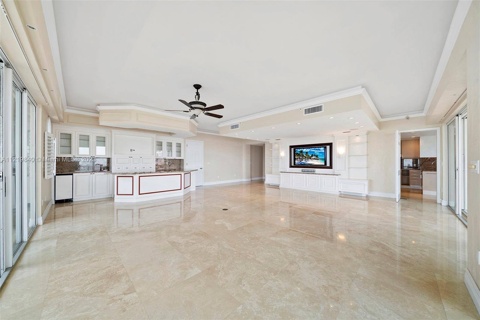 Experience Fisher Island living in this stunning oceanside unit located in Villa del Mare! Features include expansive wrap around terraces with unobstructed 180 degrees of beautiful views of the ocean, Miami Beach and Government Cut from a 5th floor. This pristine 3 Bedroom, 3.5 Bath residence encompasses 3,140 sq ft interior, marble floors throughout, custom bar, top of the line appliances, private terrace in the master bedroom and guest bedroom and many more features. Easy to show!