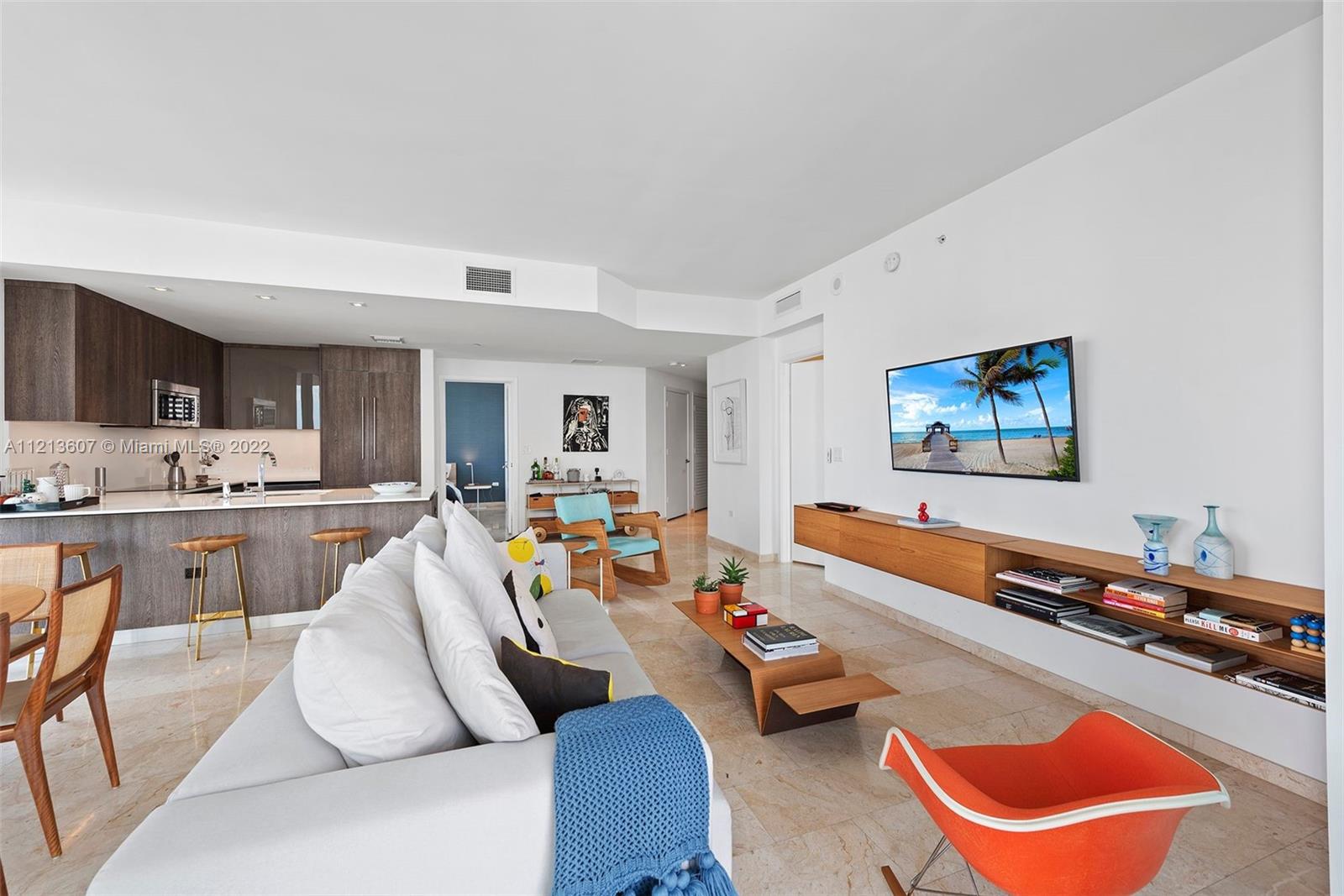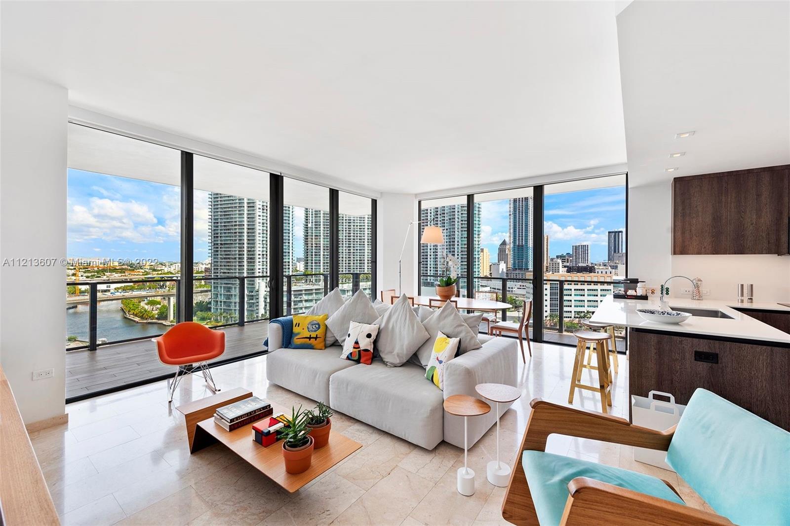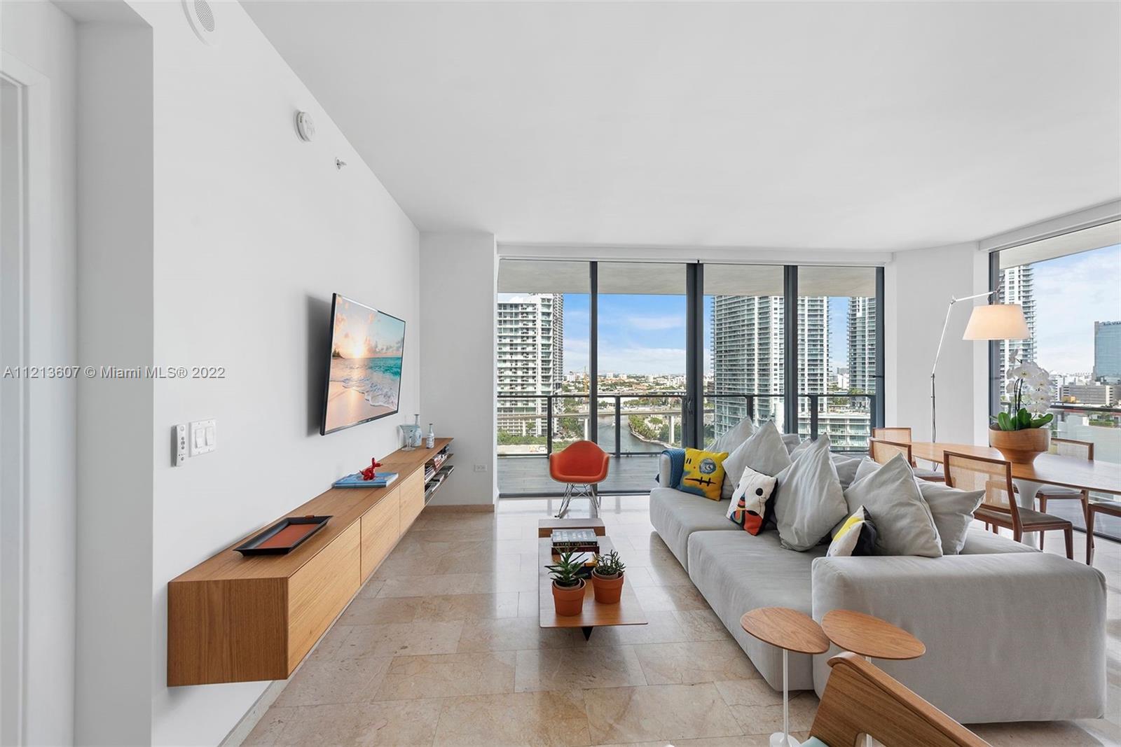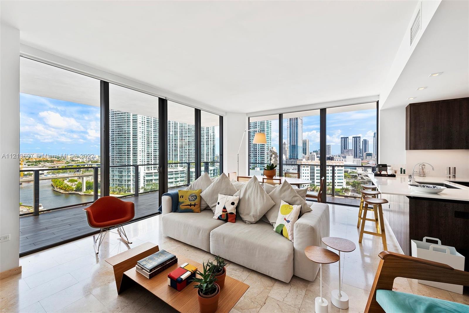 This is it! Reach Brickell Citi Centre, immaculate and beautifully furnished 2 bedroom/2.5 bathroom apartment with lovely river views. This spacious 1,265 sq. ft. turn key residence features modern designer decor, open floor plan with a large living area and an expansive balcony. Floor to ceiling high impact windows/doors, light cream marble floors, motorized window treatments, Italcraft rich wood kitchen with island, designer bathroom vanities, mirrors and contemporary bath fixtures. Reach is an exclusive full service building offering 5 star amenities which include concierge, valet parking, 2 pools, barbecue area, a fabulous gym, a health spa w/ hair salon, a large party room, children's playroom, 24/7 security and direct access to Brickell Citi Centre Mall.