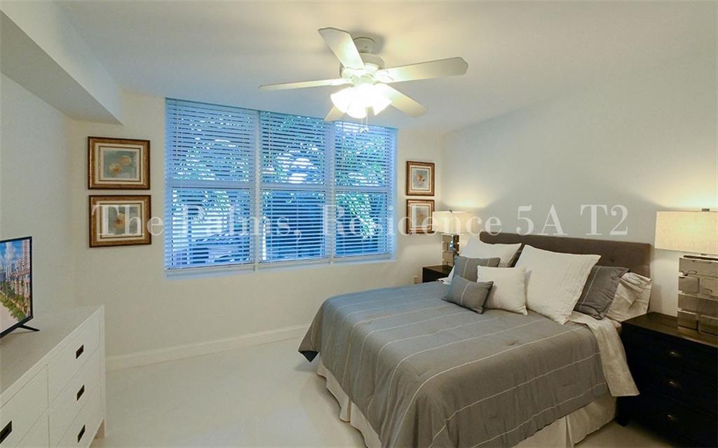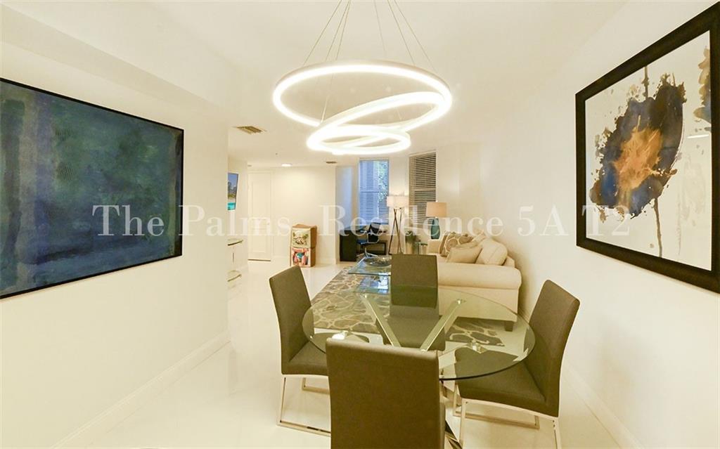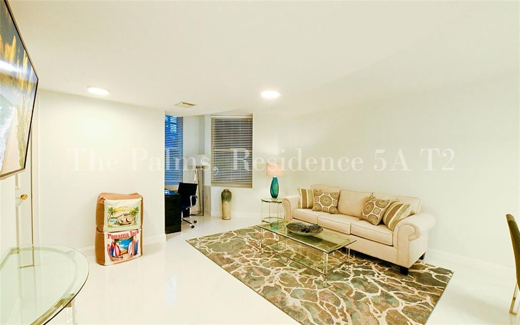 One of only two 1 bedroom suites at The Palms. This perfect Pied-a-terre is pet friendly and has access to all The Palms amenities plus a private keyed elevator landing and large kitchen!. Located at The Palms with 24hr attended front gate, 24hr attended front desk, 24hr valet, close to 3 airports, 2 story state of the art gym w/ squash/racquet ball court, 2 pools with chair and towel service at the beach and pool, 2 Club rooms, Billiard room and tennis!