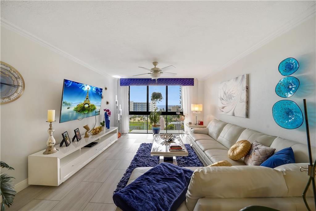 Move-in ready OCEAN VIEW CONDO!! Gorgeous sunrises from this updated 2/2 8th floor condo. Furniture can be included (except tvs & bed in 2nd room). New vinyl floors, new baths, impact windows, new pipes, new water heater, crown moulding, granite counter in the kitchen, stainless appliances, decorative dining wall, and tons of storage! Closet in dining, linen closet in hall, wall closet in 2nd bedroom, and walk-in in master bedroom. Enjoy the sunrise from your balcony, and sunsets & intracoastal view from the pool deck. Beautifully appointed updated lobby on 1st & 2nd floor, laundry room on each floor with additional assigned storage. Amenities include - pool, gym, sauna, billiard room, and community room. Minutes from Hollywood Beach Broadwalk!! MUST SEE!!
