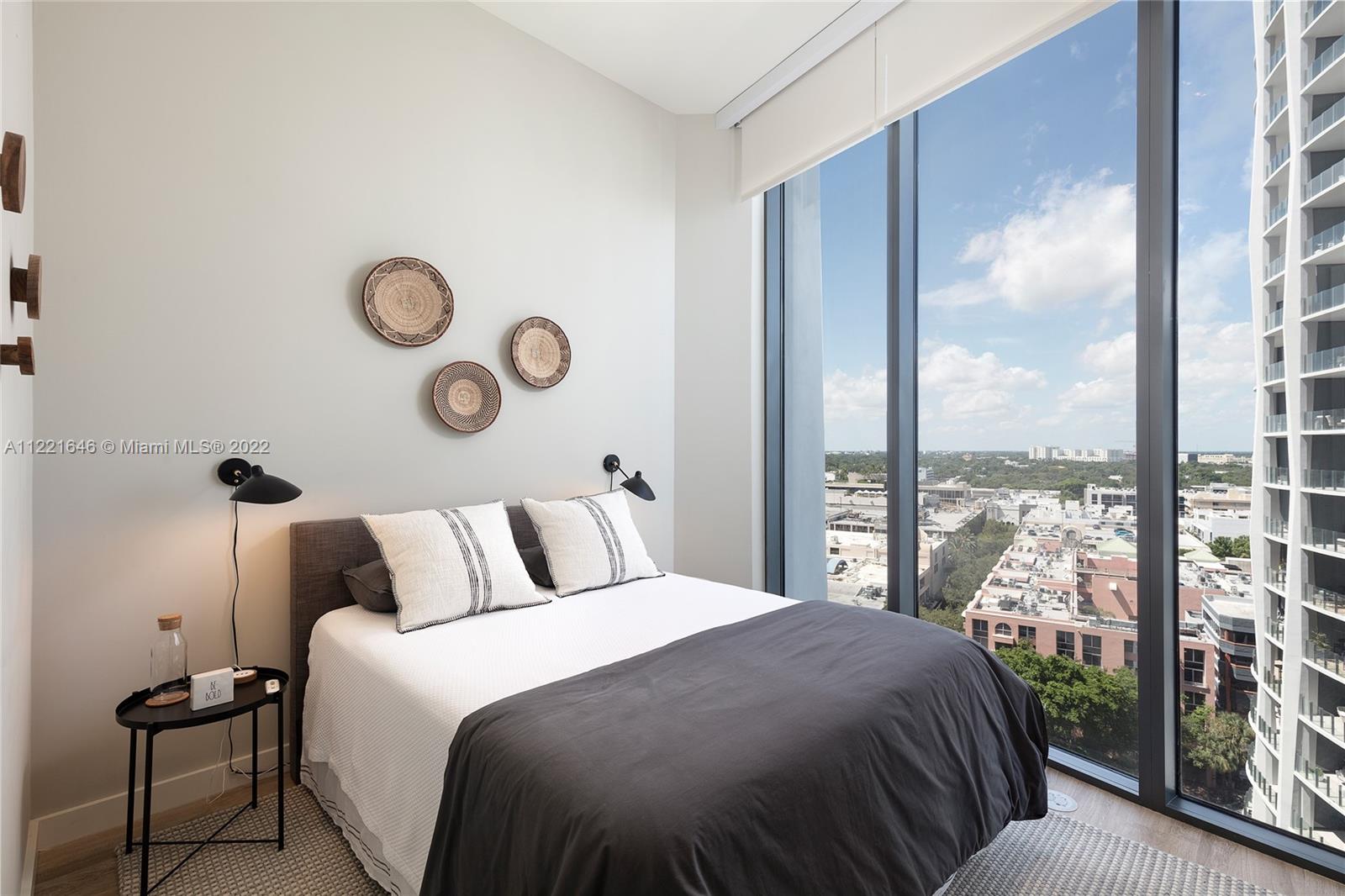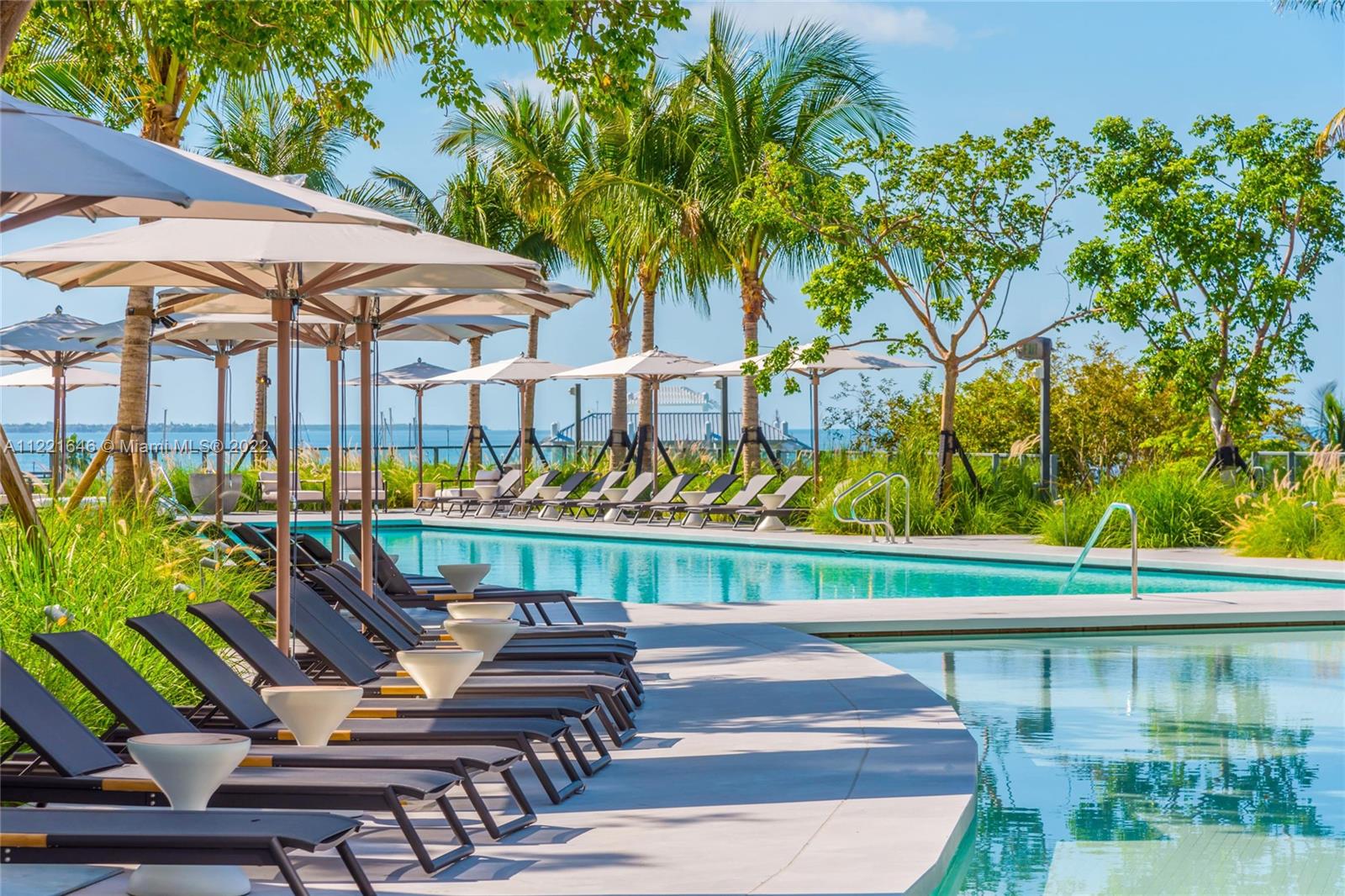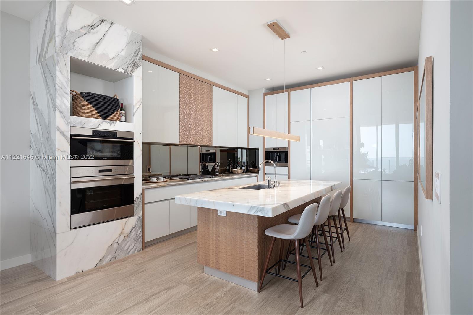 One of a kind floor plan with exquisite design features at Two Park Grove. Through your private foyer, be greeted by spectacular views of Biscayne Bay, 12’ floor-to-ceilings windows, and a private 314 sf terrace. Thoughtful upgrades and impeccable, custom wood accents throughout put this home in a class of its own. The kitchen features Italian cabinetry, marble countertops, high-end appliances, and improved storage. Primary bedroom with water views, two walk-in closets, and a luxurious marble and shell stone bathroom. Split floor plan with two additional bedrooms plus den/office. Unbeatable walkability and 5-star amenities including 24-hour concierge, restaurants, fitness center, spa, 4 pools with attendants and private cabanas, kids’ room, movie theater, and more. Two parking spaces.