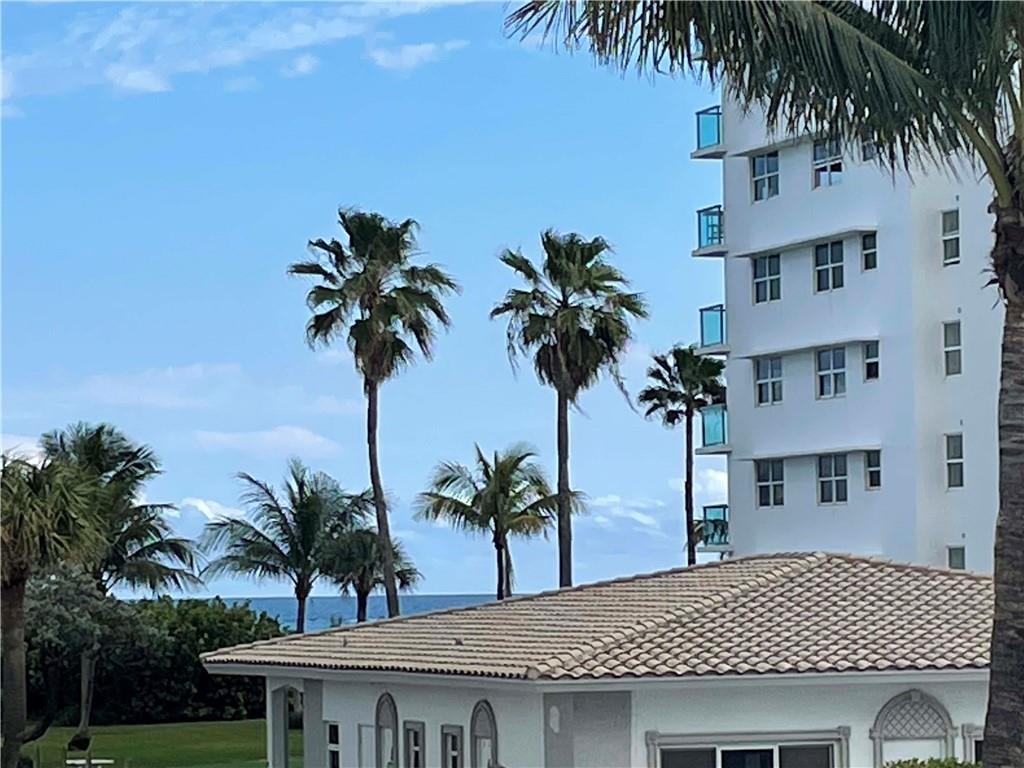 Nicely remodeled, open kitchen . All impact glass. 2bed-1 1/2 bath with possibility of making 2 bath. NO POPCORN. Both baths have newer vanities. Small view of the ocean from patio. This complex is on the ocean with a private entrance to the beach. Beautiful grounds-lush flora, small ocean inlet lake, large pool just redone . Bocce Ball, putting green and shuffle board. Community building plus nice community room in building. Large first floor well equipped and clean laundry. Locked lobby and friendly people. One of the lowest maintenance fees on the beach in 3 counties! This unit is on the second floor! Golf course, park and Mall about 1 mile away. One of the few building that allow a second car to park in guest parking.