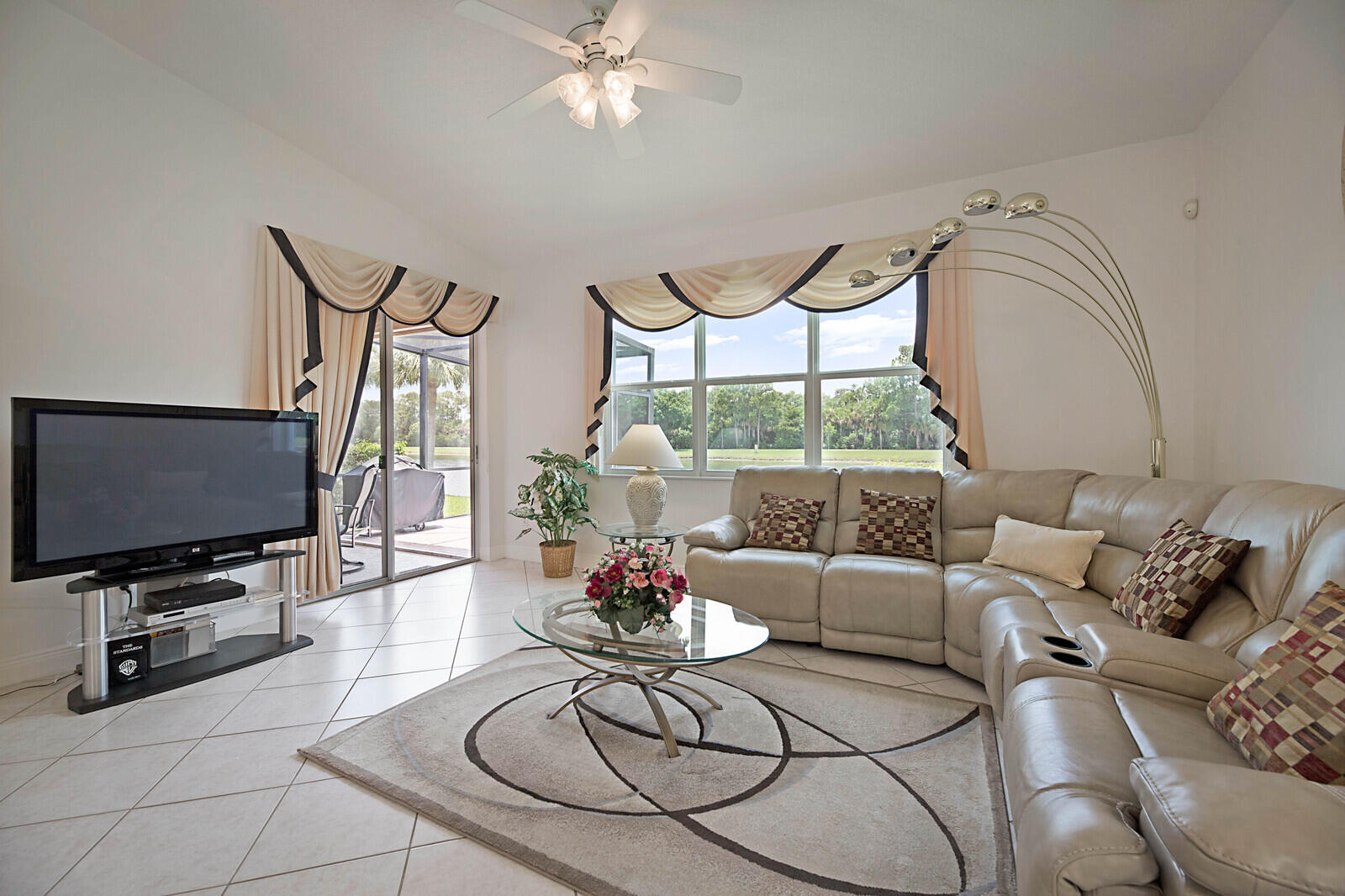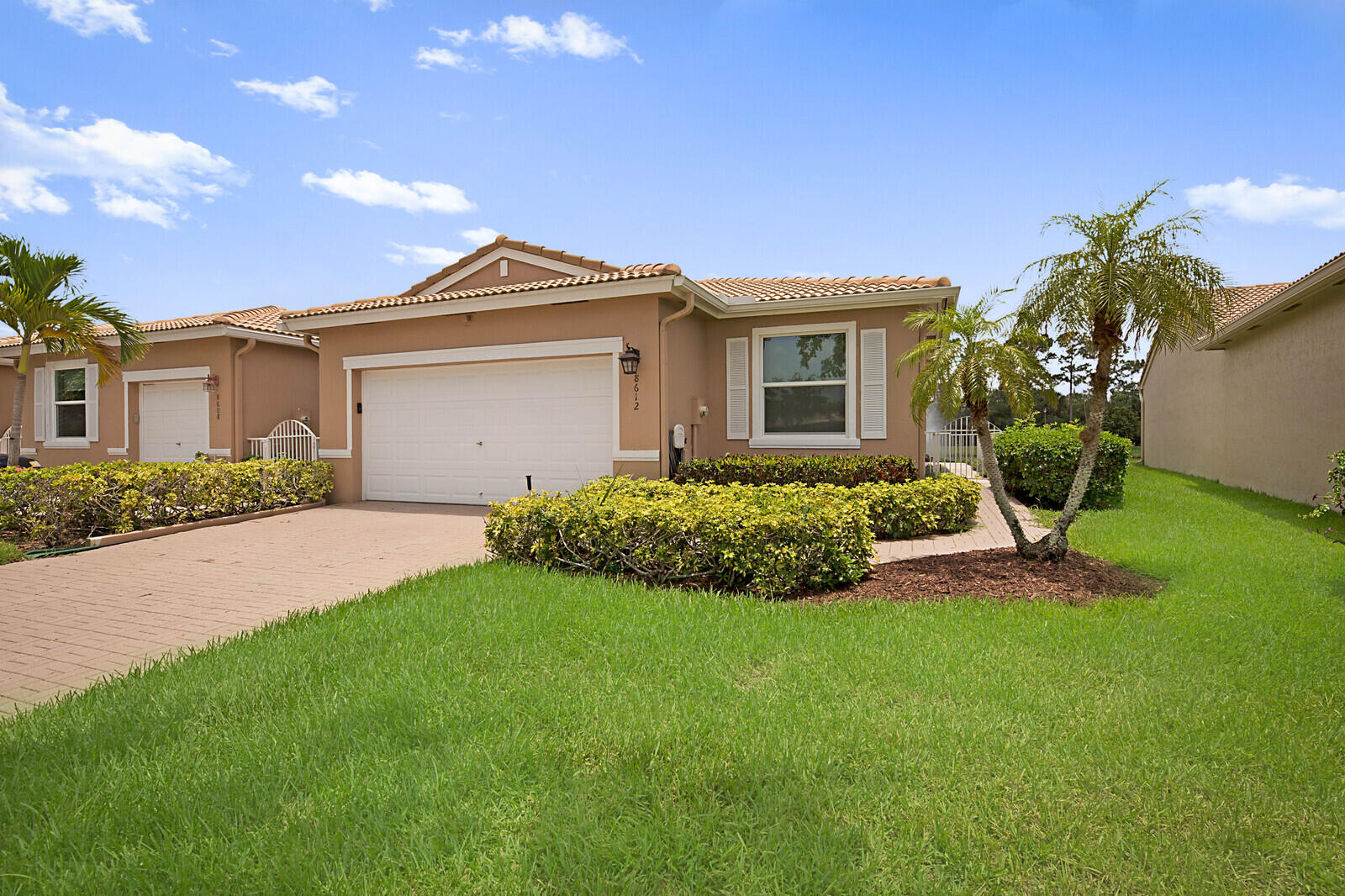 LARGE CORNER UNIT-MOVE-IN READY!! Beautiful waterfront home has 2 bedrooms plus den or 3rd bedroom, 2baths and a 2-car garage. This property boasts volume ceilings, tile flooring, Impact windows throughout and accordion shutters on the patio of the home along with newer appliances, portable generator and much more. The A/C is 2013 The water heater is 2019This all age community offers a clubhouse, pool, exercise room and much more. Located next to shopping, dining and entertainment.