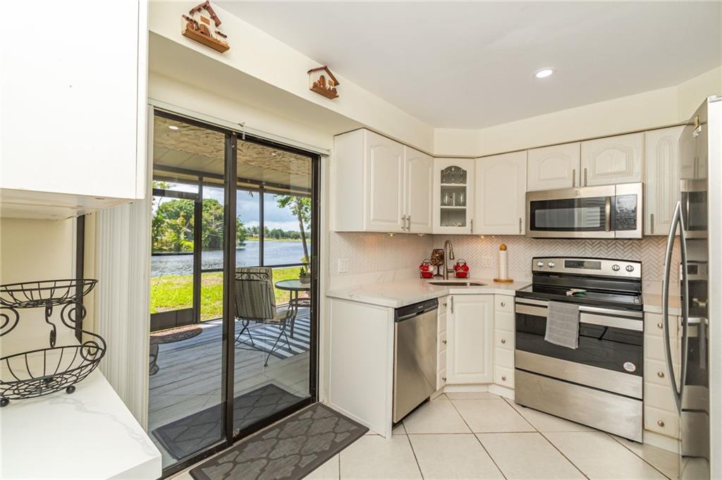 Come home to this peaceful serene stunning lake view, corner unit! This fully remodeled 3 bedroom, 2 bath villa on the lake in sought after Jacaranda area will not last! Beautifully remodeled kitchen, with S.S.appliances, new quartz countertops, and more. Wood and ceramic tile throughout the home for easy maintenance. Full size washer/dryer. Oversized roofed and screened patio overlooking a serene lake, perfect for entertaining and enjoying the Florida lifestyle. No garage but 2 parking spaces. Low maintenance fees! Close to restaurants, shopping, hospital and all major highways. New roof and and outside painting coming very soon!