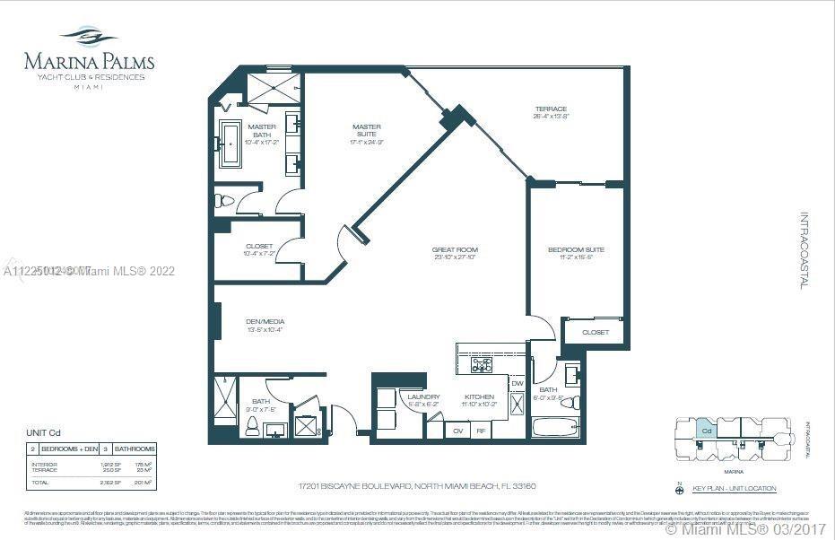 Bright Spacious 2bed+den (or 3rd bed) and 3bath unit with premium finishes , Marina Palms residences offer an interior elegance appropriate to their inspiring views. Comes standard with Snaidero cabinetry, stone counter tops; Wolf, Miele and Sub-Zero appliances, reserved parking plus valet. Property features 750+ ft of waterfront on 14 acres, state-of-the-art full service private marina and yacht club and stunning water views. Unit has view of palm tress.