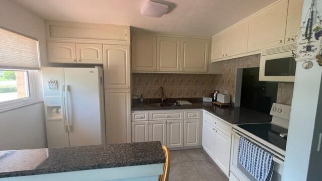 Custom featured oversize villa sits right up front on Lake Dora Dr just adjacent to the Phase A clubhouse. Opened wall in kitchen gives it a large modern feeling with the raised floor thru the enclosed glass porch area adding more room thru living space. All IKEA furniture in the master bedroom, updated bath showers with glass doors, tiled thru out, stacked washer and dryer and impact windows thru out. Large dining room table with extension fits a large family. This unit was well loved and just waiting for the right person to enjoy it!