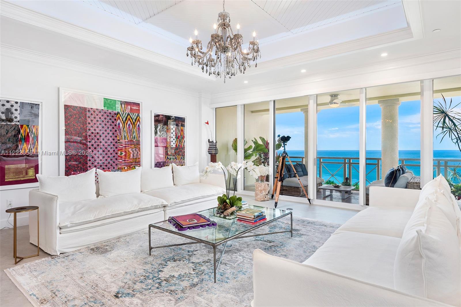Spectacular and very unique corner unit with high ceilings throughout which make it grandiose and absolutely gorgeous. Located in a world-class condominium, Grand Bay Residences which offers a luxurious resort lifestyle only steps away from the beautiful white beach. Offering 3 ample bedrooms and 4.5 bathrooms with a private elevator that opens to an elegant foyer, formal living and dining room, two terraces, large kitchen with breakfast area and family room all overlooking the breathtaking and stunning views of the ocean and bay. Valet service, 24-hour concierge, pool, gym, and so much more. Own a piece of paradise on beautiful Key Biscayne!