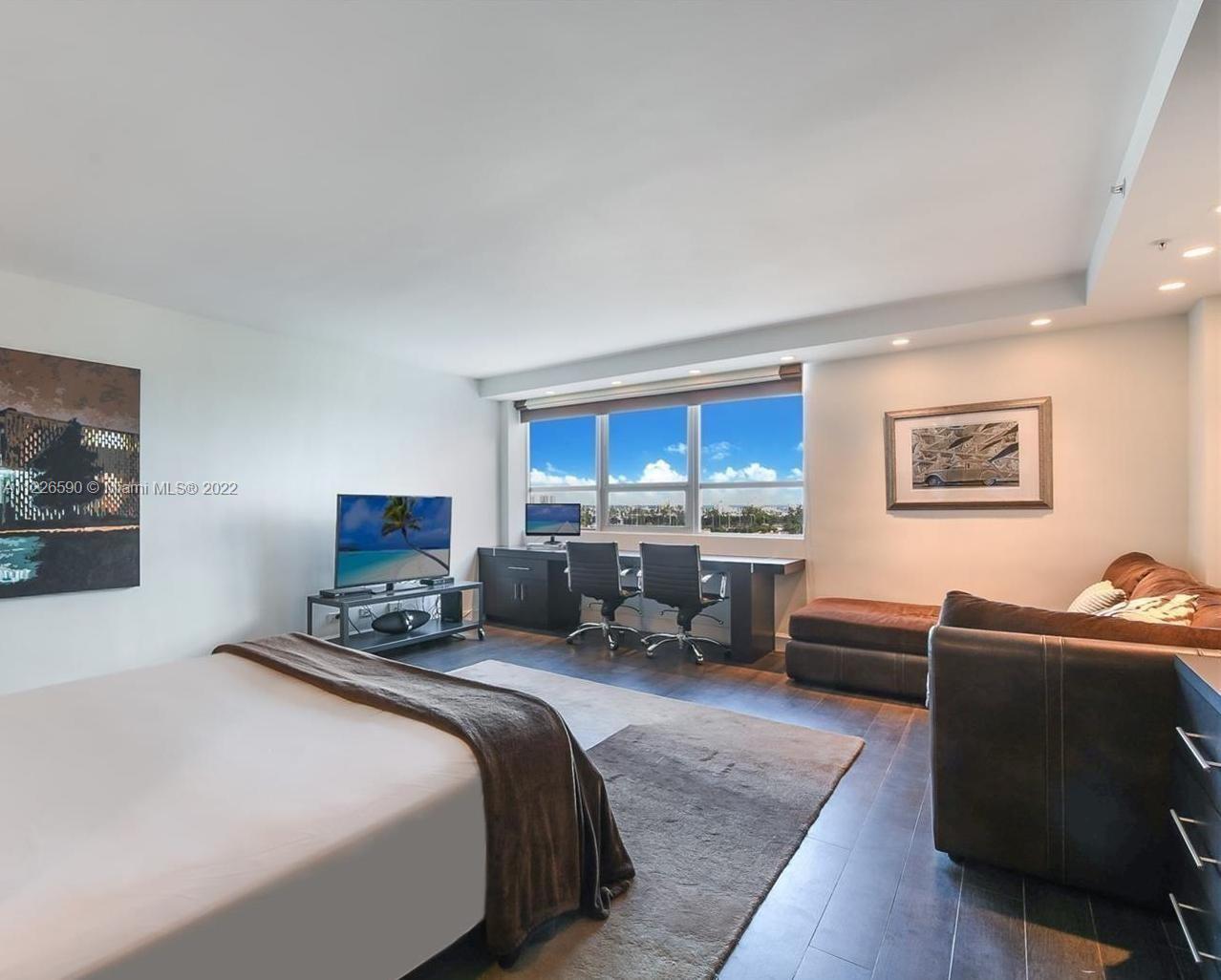 TENANT OCCUPIED UNTIL JULY 7. Completely Renovated Studio in the heart of South Beach! Custom carpentry including murphy bed, desk/breakfast area, armoire, & kitchen cabinets. high-end appliances (oven/range, microwave, dishwasher, beverage ctr & refrigerator w/icemaker), mosaic tile backsplash & Silestone counters. Totally Renovated Bathroom. Lots of added storage & low maintenance porcelain floors throughout. Custom black out window treatments. Walking distance to Lincoln Road & minutes from the beach. Resort offers infinity pool & jacuzzi, state of the art gym, a spa/salon, valet parking, 24 hr security, restaurants with full bar and pool lounge service, dog day care and park, on-site dry cleaners, market/liquor store and much more. Ok to lease 12 times a year for a minimum of 30 days