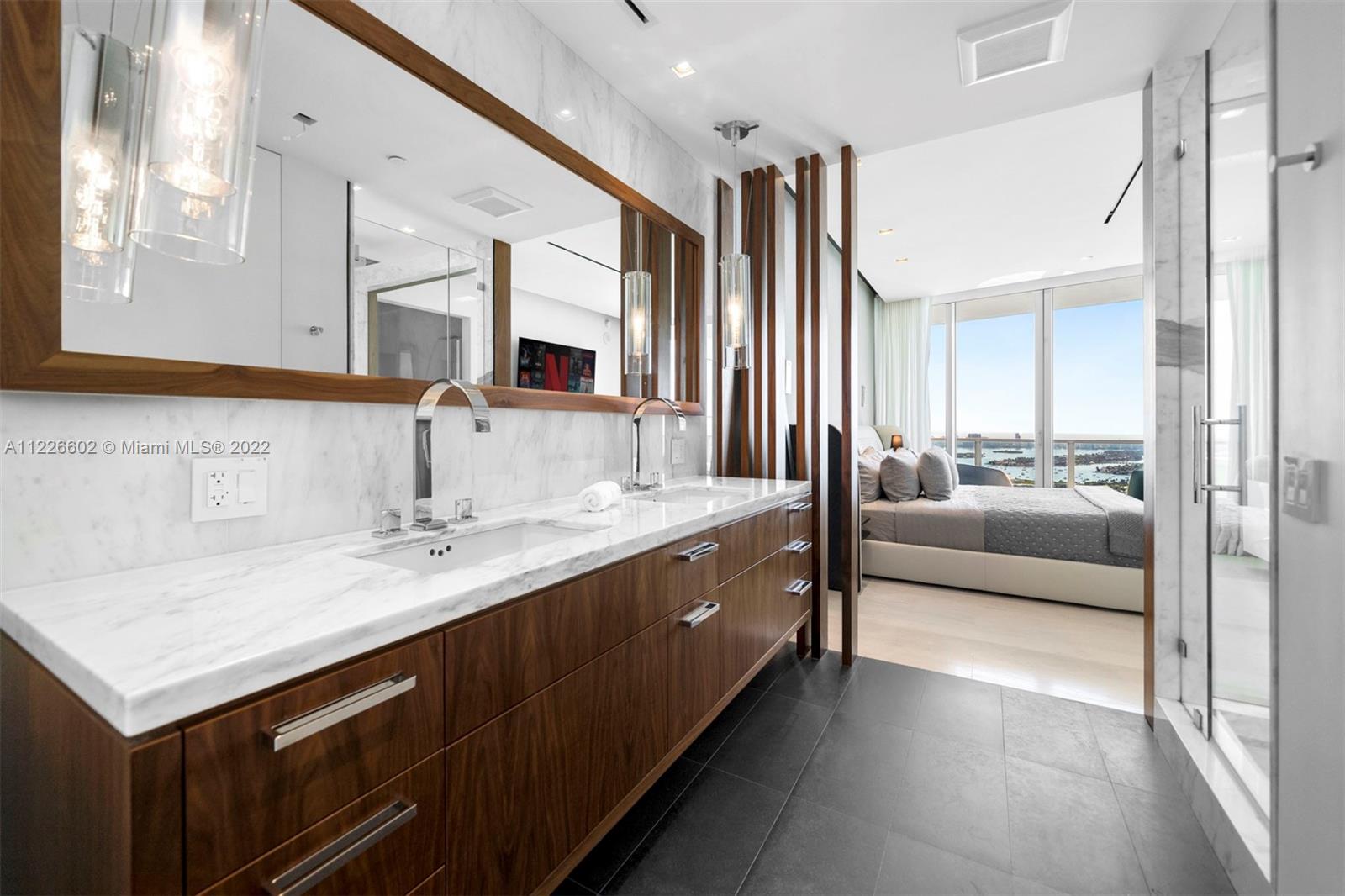 Recently remodeled 2 Bedroom, 2 Bathroom + powder room at the Marquis Miami Downtown with incredible views of Biscayne Bay and the Miami Beach Skyline. This condo has just been completely renovated with top of the line finishes and quality craftsmanship including natural stone flooring throughout, custom millwork, new lighting, linear air diffusers, new bathrooms and kitchen and spacious closets. Marquis Miami has a full suite of services and amenities and is located across from Maurice A. Ferré Park in downtown Miami, home to the Perez Art Museum & Patricia and Phillip Frost Museum of Science and minutes to FTX Arena as well as the Arts & Entertainment District.