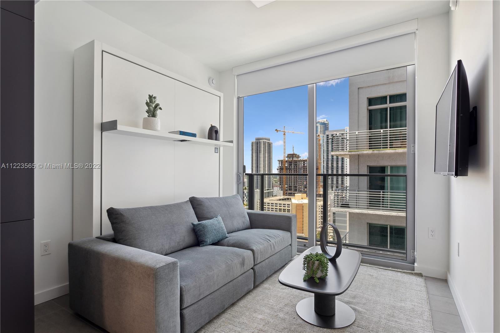 Fully furnished turnkey studio set up as a one bedroom in the Hotel Rental Program Agreement (attached), great opportunity to use and rent when you're not using it. YOTEL MIAMI, the first building specifically designed for short term rentals, AirBnB approved. Washer/Dryer in unit. Sleeps 4. CASH ONLY. Amenities include pool, lounge area, gym, pet spa, social room, pool table, and more. Yotelpad Miami offers a top floor owners' lounge, gym, pool with jacuzzi, restaurant, coffee bar, separate resident's lobby with 24/7 front desk staff, and valet parking. Strategically located a minute from Brightline Station, FTX Arena, and more. Included in HOA: Internet, water, waste management, internet, 1 TV box, building maintenance