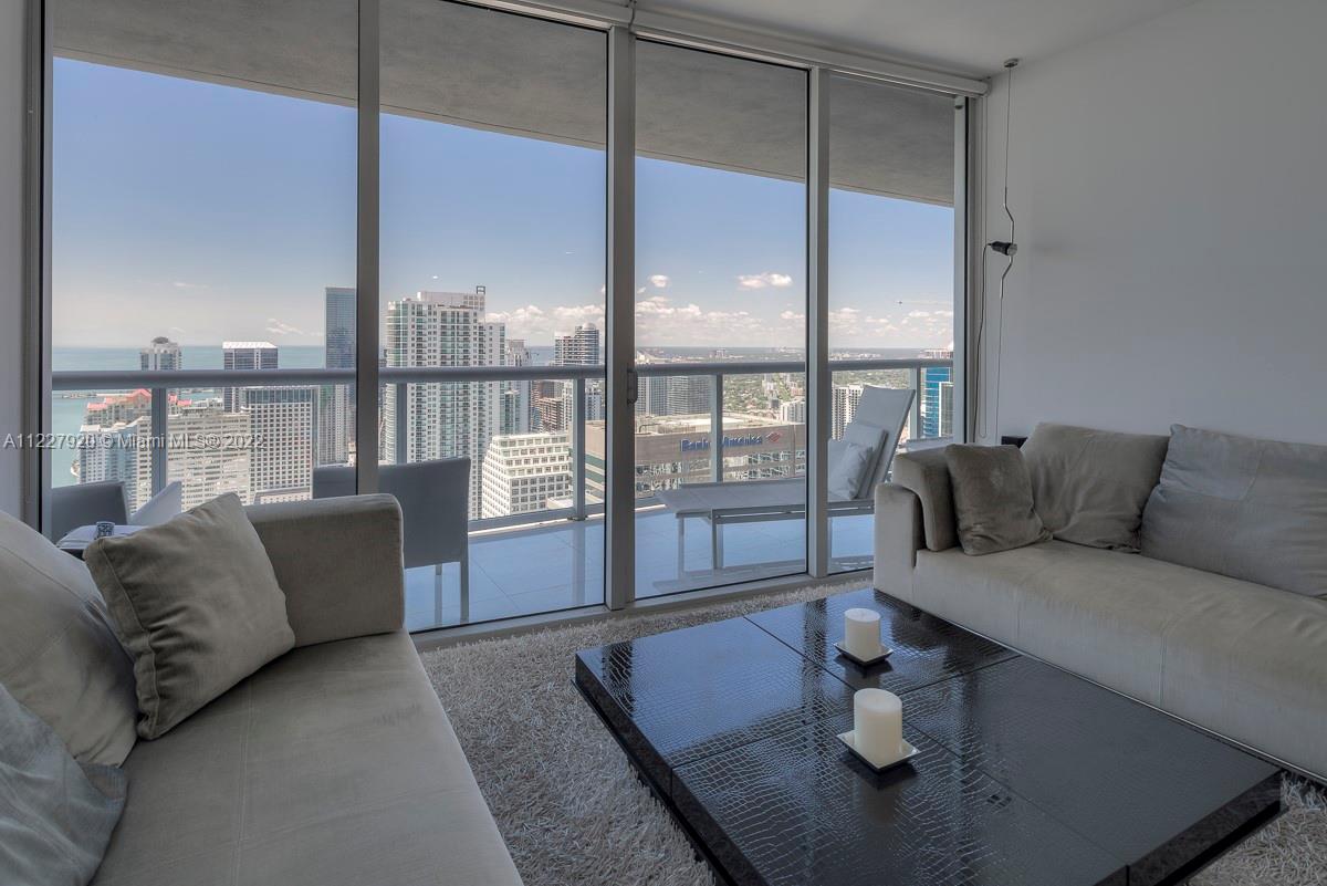 Spectacular View 51 st Floor Castle in the Sky. #5103 is a 2bed/2bath + Den w/ 1,518 sq.ft. of sweeping Biscayne Bay water views from living/both bedrooms. Upgrades include: White Glass floors, dark wood California closets, blackout and roller shades. Den can be converted into 3rd bedroom.