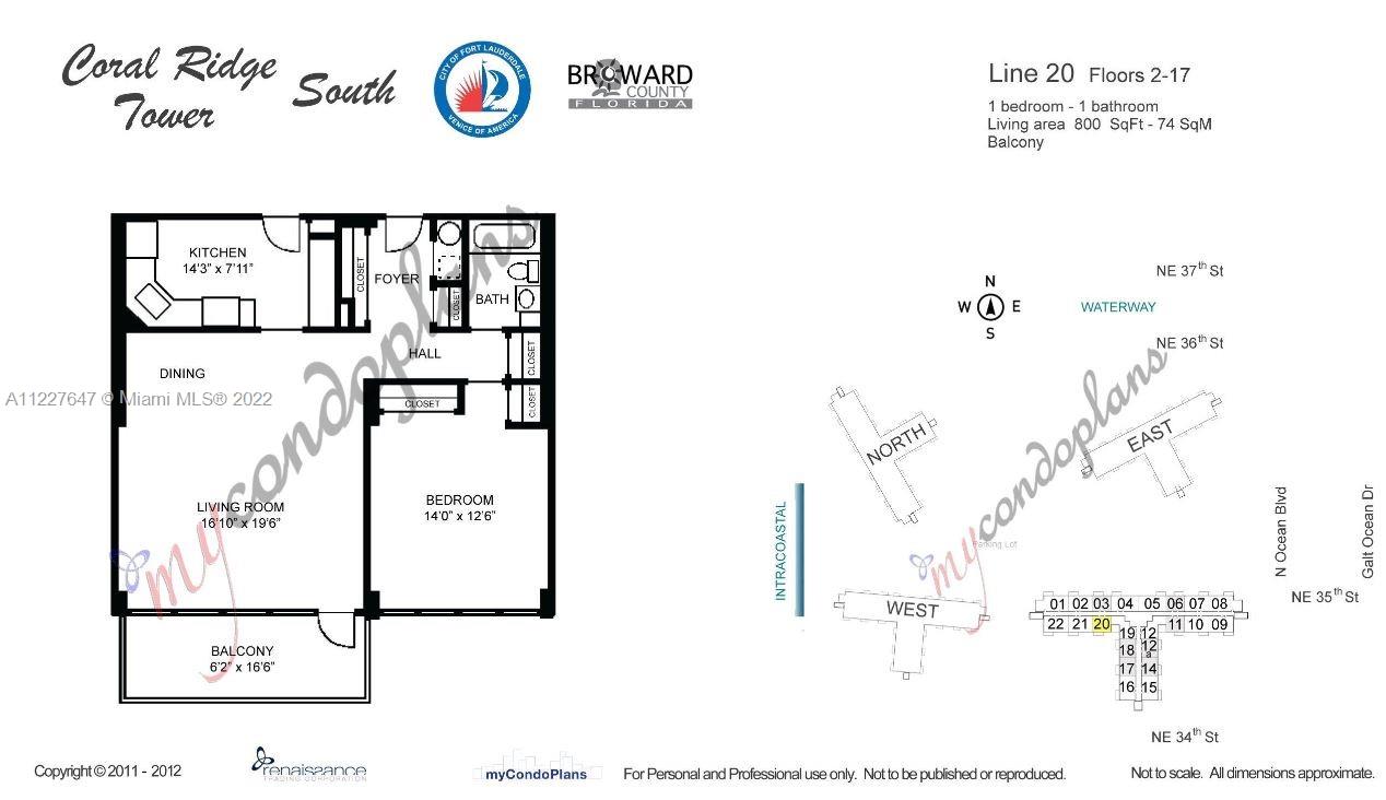 Stunning views of the Ocean, Intracoastal, City and Community Pool from your balcony! One of the most sought after buildings at Coral Ridge Towers, just steps from the beach! Spacious living area with Livingroom/Dining room combination, Eat-in Kitchen, Bedroom with 2 closets, plenty of storage with additional spacious hall closet and linen closet, marble in bathroom. Impact windows and balcony door. Separate Storage area for residents, and laundry is just a few steps down the hall. Beautiful waterfalls in the lobby, ammentities include hobby/recreation room, library, gym, community pool, and loads of activities and holiday parties for socializing! This community states HOPA 55+