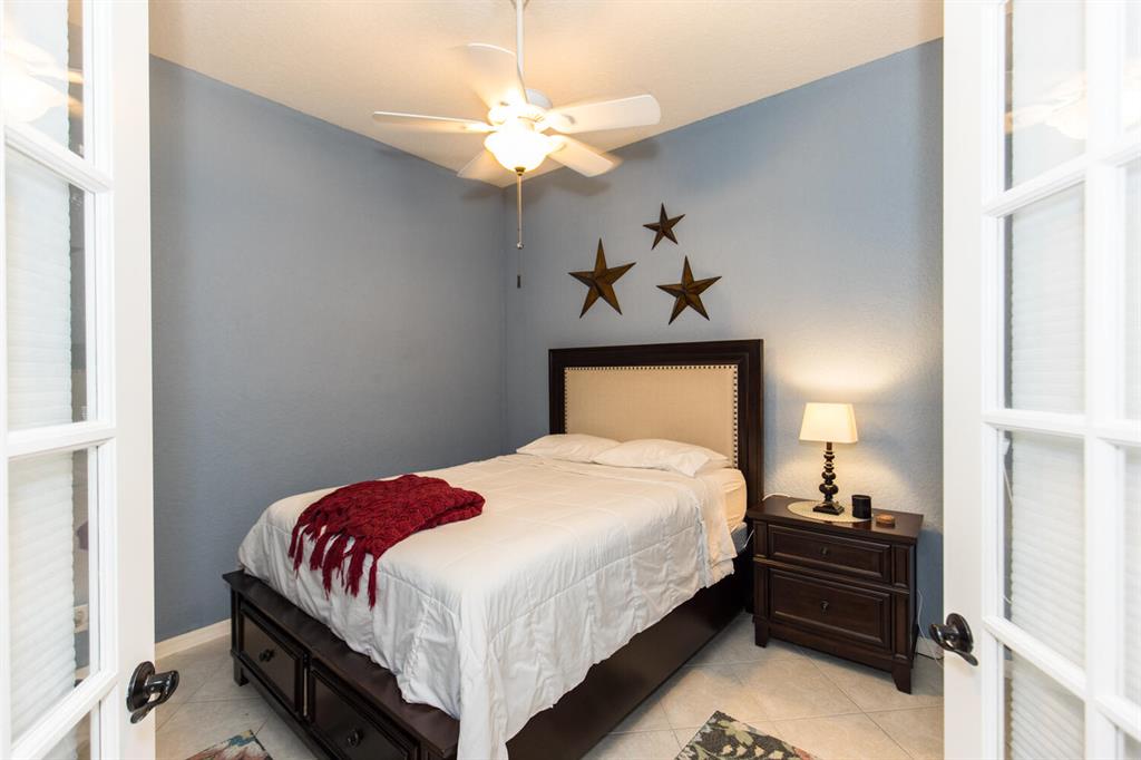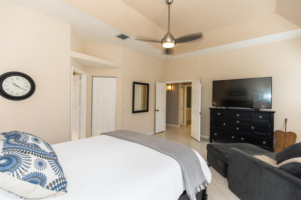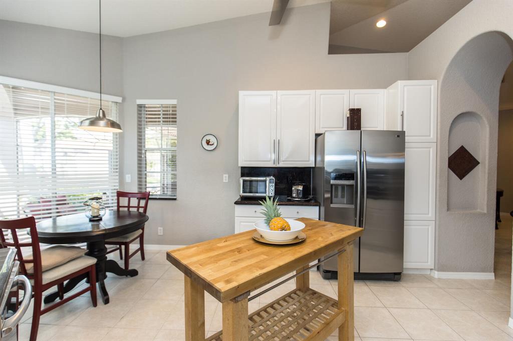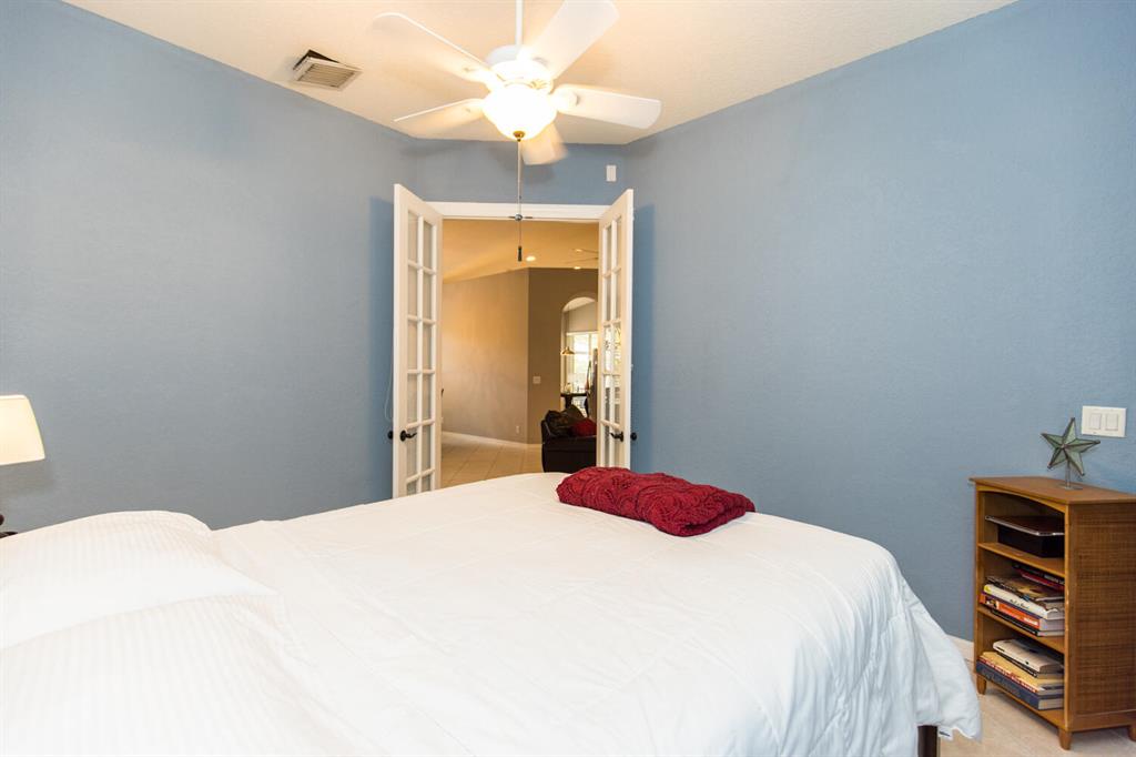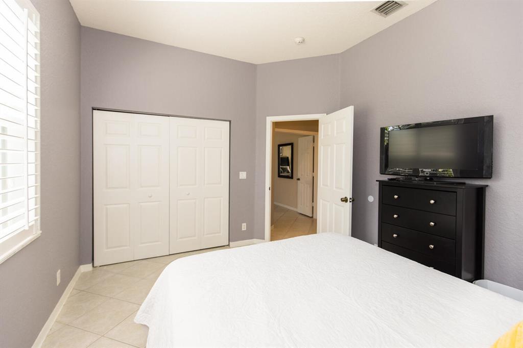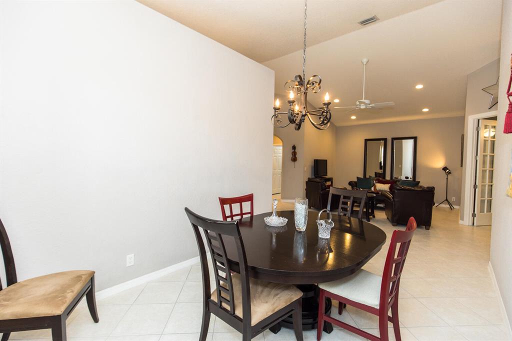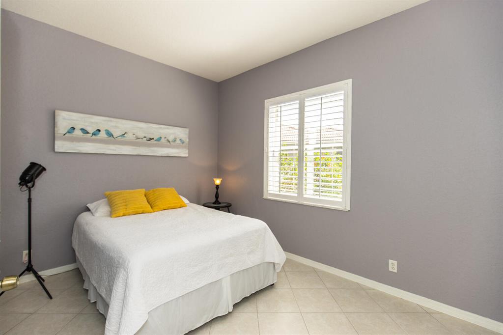 Shows like a model home!. Extremely well kept 2BR villa plus den/ office or possible 3rd bedroom. Kitchen features granite counters and Maytag stainless steel appliances. The whole interior has diagonal laid tile floors. Plantation shutters adorn the windows and all exterior openings have accordion hurricane shutters for protection. Covered screened porch in the front of the house and large screened porch in the rear. Vaulted ceiling in the living areas and coffered ceilings in the master BR with numerous hi hat lights. The spacious master bathroom features under counter lighting a separate tub & shower. The den features french doors and the hallway sconce lighting.Other features include a brand new dryer, 1.5 year old washer, 1 year old garage door opener and a painted garage floor.