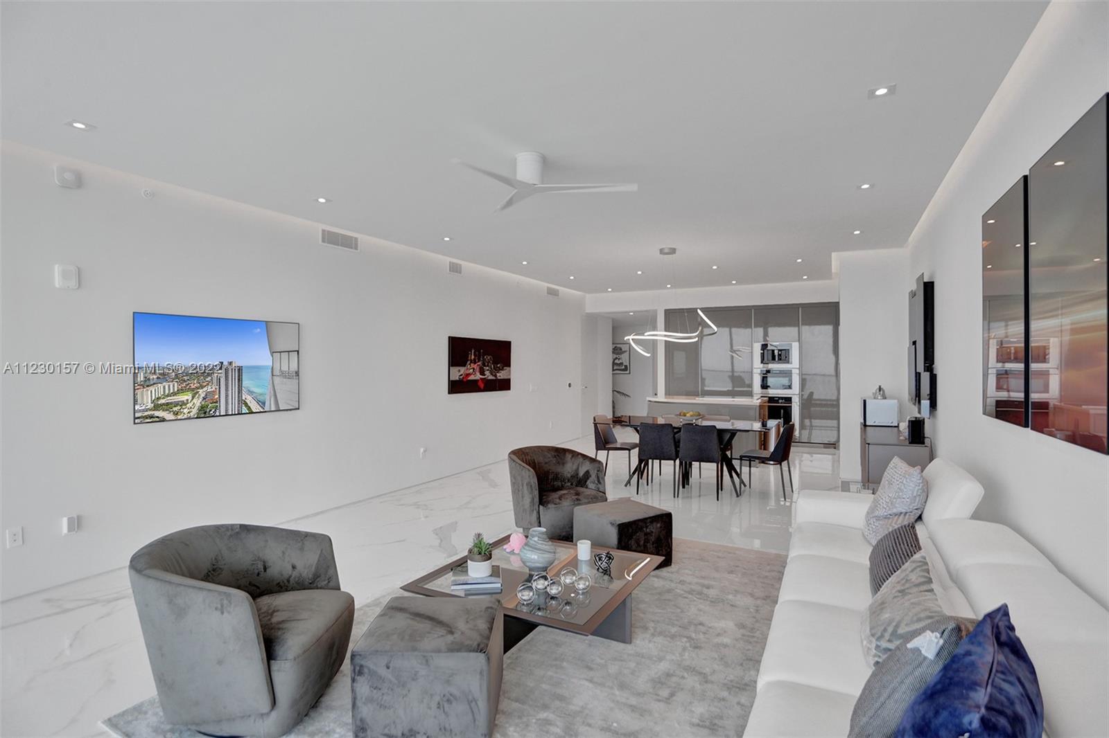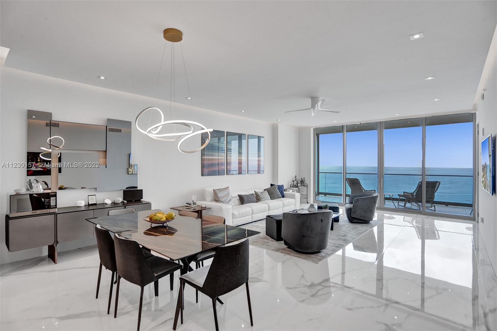 Enjoy elevated ocean-front living at the Residences by Armani Casa by world-class architect Cesar Pelli and interior design by the acclaimed fashion designer Giorgio Armani. This floor-through residence offers the best sunrises and sunsets from its spacious balconies that come equipped with an outdoor grill and refrigerator. This ready to move residence is tastefully decorated and has 3 beds + den with 3 1/2 baths, 10 ft. high ceilings, floor-to-ceiling glass windows; 10 ft. deep balconies, and an Armani designed Dada kitchen featuring Wolf Sub-Zero appliances, and spa-like marble-clad Armani Roca bathrooms. Residences by Armani Casa offers a full service restaurant, spa, gym, pilates, hair salon, theater, kids area, bar, beach services and much more.