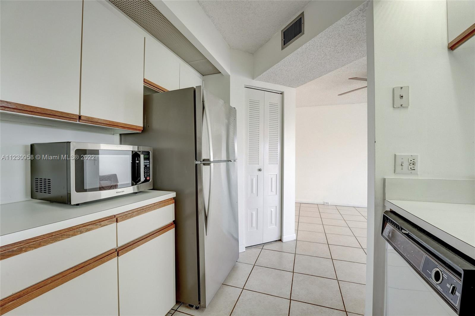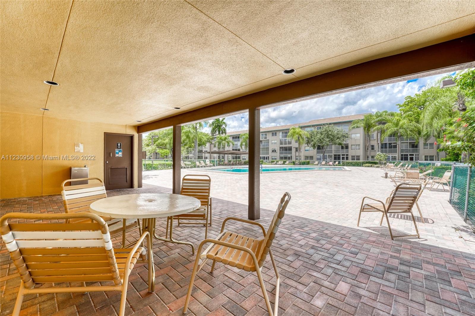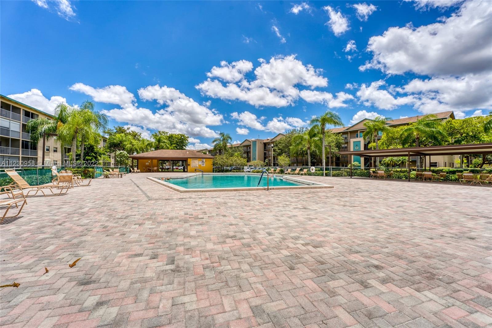 Spacious 1 bedroom 1.5 bathrooms with a serene pool view. Very cozy and in pristine condition with access to the attic which is located in the master bedroom. Have peace of mind. Of not having to worry about the noise coming from above. Tiled floors thought out the entire condo with laminate flooring in the master bedroom. Neutral colors throughout as well. Well-kept kitchen with all appliances. The unit is equipped with a washer and dryer inside. This condo is in the most exclusive 55-plus community in Pembroke Pines. Resort-style living with a million-dollar clubhouse, movies, fitness center, transportation, free golf, pharmacy, cafe, 24-hour security patrol, and more.