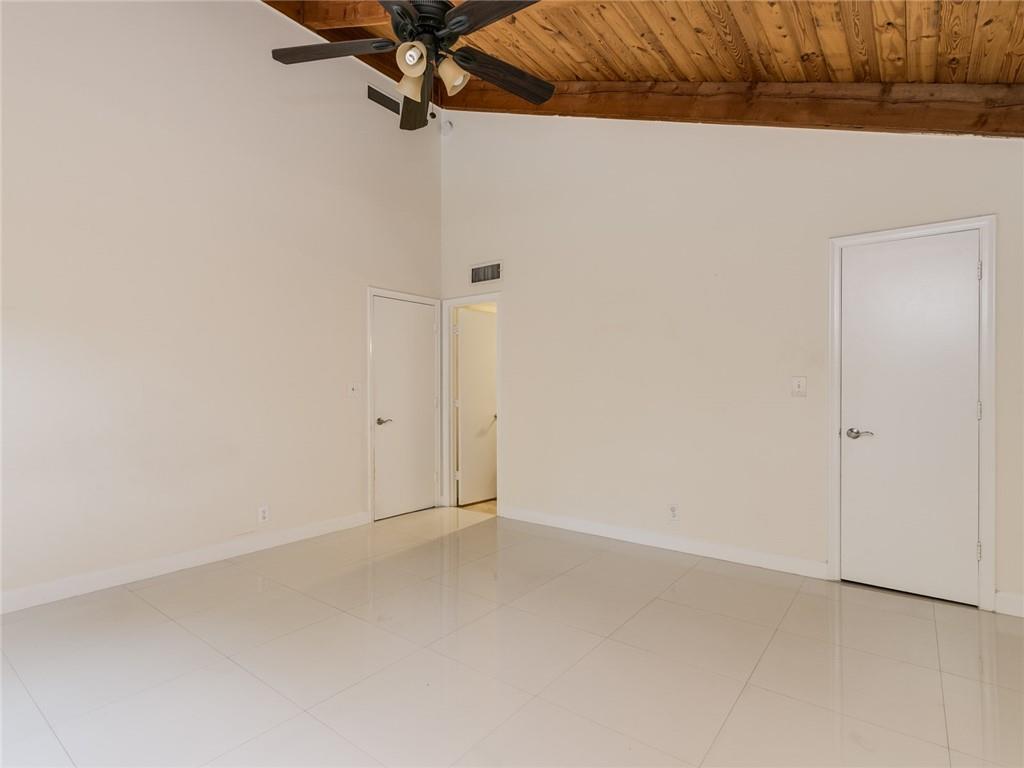 2/2 UNIQUE CHALET TYPE VILLA LOCATED IN PALM-AIRE VILLAGE FEATURES VAULTED CEILING WITH EXPOSED WOOD BEAMS. TILE FLOORS THROUGHOUT. LARGE PRIVATE FENCED IN BACKYARD WITH GAZEBO AND SHED AS WELL AS A FENCED IN FRONT PATIO OFF OF THE SECOND BEDROOM. LARGE PRIMARY BEDROOM. 2ND BEDROOM FEATURES A LOFT AREA. BOTH BEDROOMS HAVE WALK IN CLOSETS.STACKABLE WASHER/DRYER. 2 PARKING SPOTS IN FRONT OF VILLA NO RENTAL OR PET RESTRICTIONS. LOW MAINTENANCE FEE OF $25 PER MONTH. NO HOA APPROVAL. MOVE RIGHT IN!