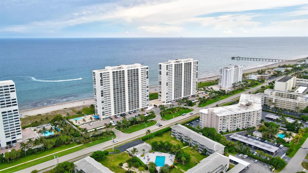 Picture yourself sipping morning coffee on your oceanfront balcony while boats, swimmers and paddlers are enjoying the Boca Raton waterfront lifestyle. Move right into this renovated, turnkey oasis with understated elegance on the 18th floor of the North building at the prestigious Ocean Towers. Take the elevator to your sanctuary in the sky where you are greeted by a semi-private, lovely foyer. Look to the left and see the endless view of the Atlantic Ocean, beach and sky. Decorated by a professional interior designer, this fantastic home boasts a large living room with dining area open to the stunning quartzite kitchen with breakfast nook overlooking the water. The love affair continues down the hall to an ample second bedroom with double closet and primary bedroom with