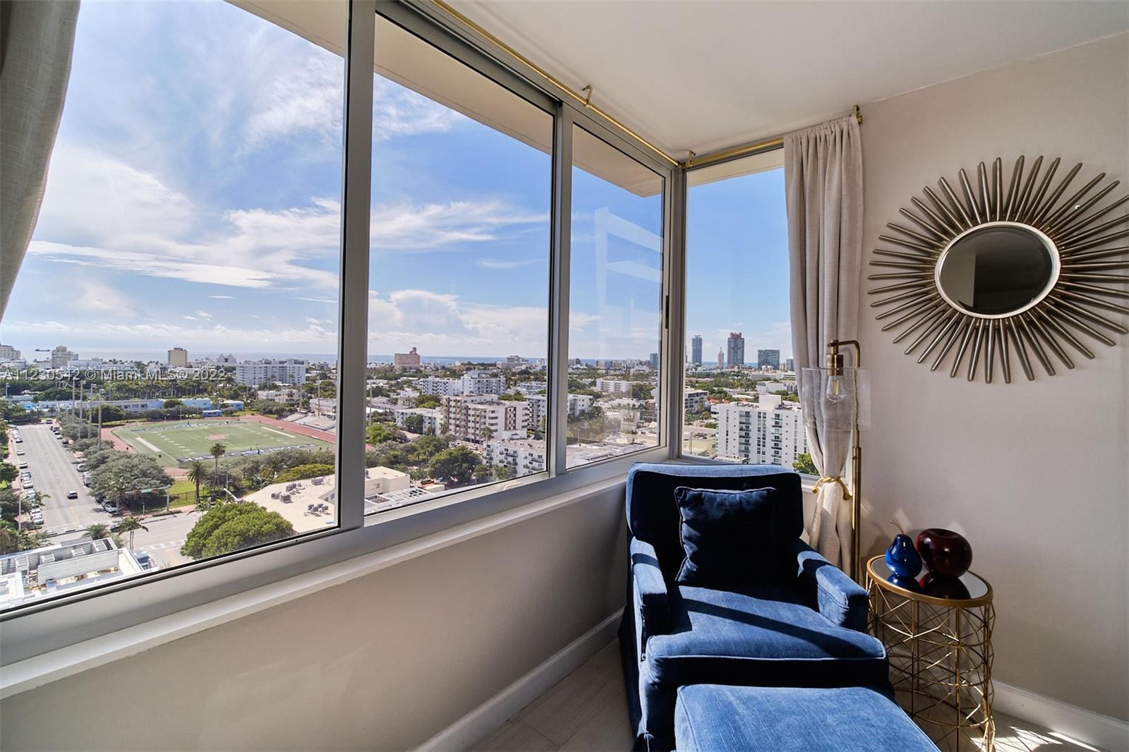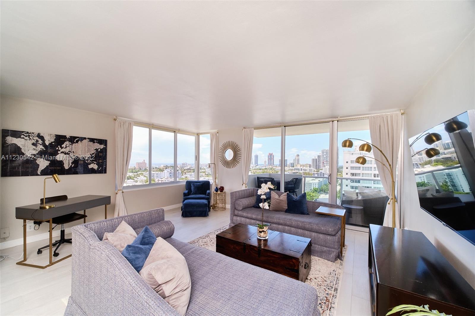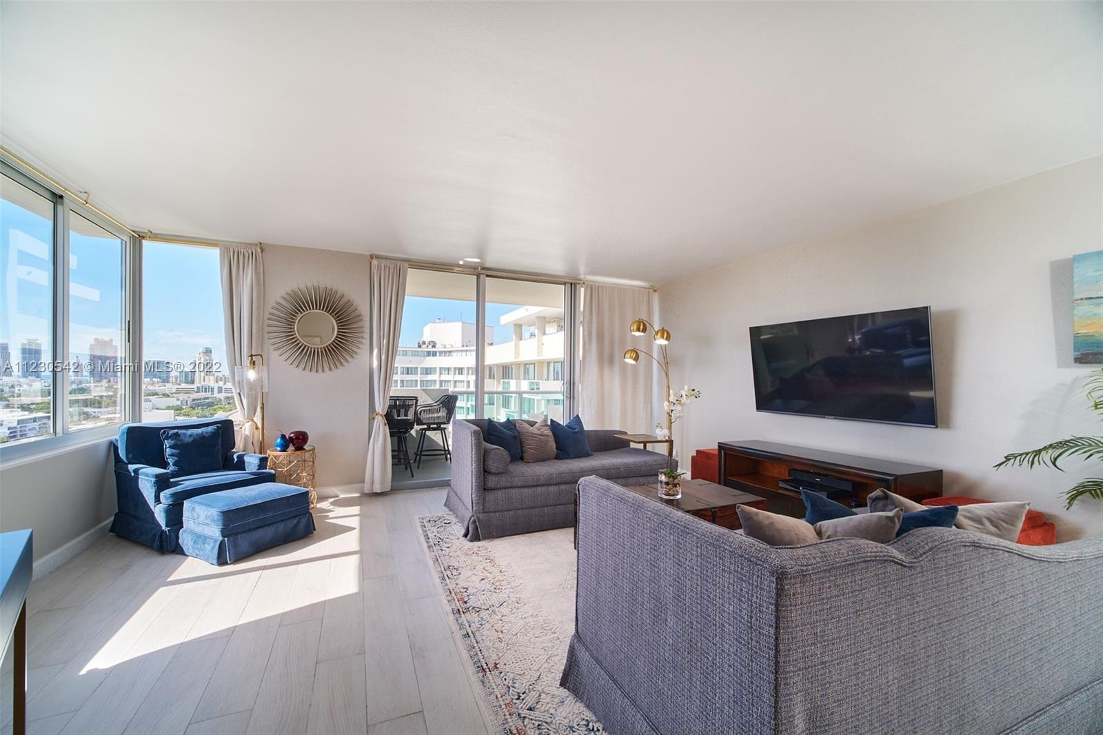 Renovated rare corner penthouse at Mirador North. Stunning panoramic ocean views. Spectacular sunrise from oversized 990 sq. ft. 1 bedroom/1.5 bath condo. Picture windows & full glass doors allows you to enjoy sunset colors also. High impact glass. Generous open balcony. 1 covered self parking included. Must see spacious living room. Granite kitchen counter & SS appliances. Fitness Center, Bayfront pool, BBQ area, Hot Tub, Community room w/Billiard, Ping Pong & board games. Convenience store on-site. Bike storage. Large pets welcome. Located within West Avenue Neighborhood in South Beach minutes from Whole Foods, Trader Joe's, Fresh Market, retail shops, Lincoln Road, restaurants & Beach. EZ access to highways & airport. 24 hr Lobby/Concierge. Current assessments paid by seller at closing.