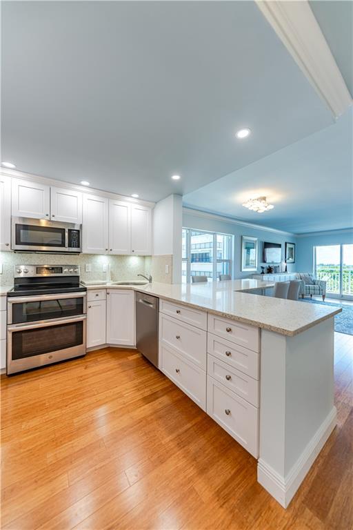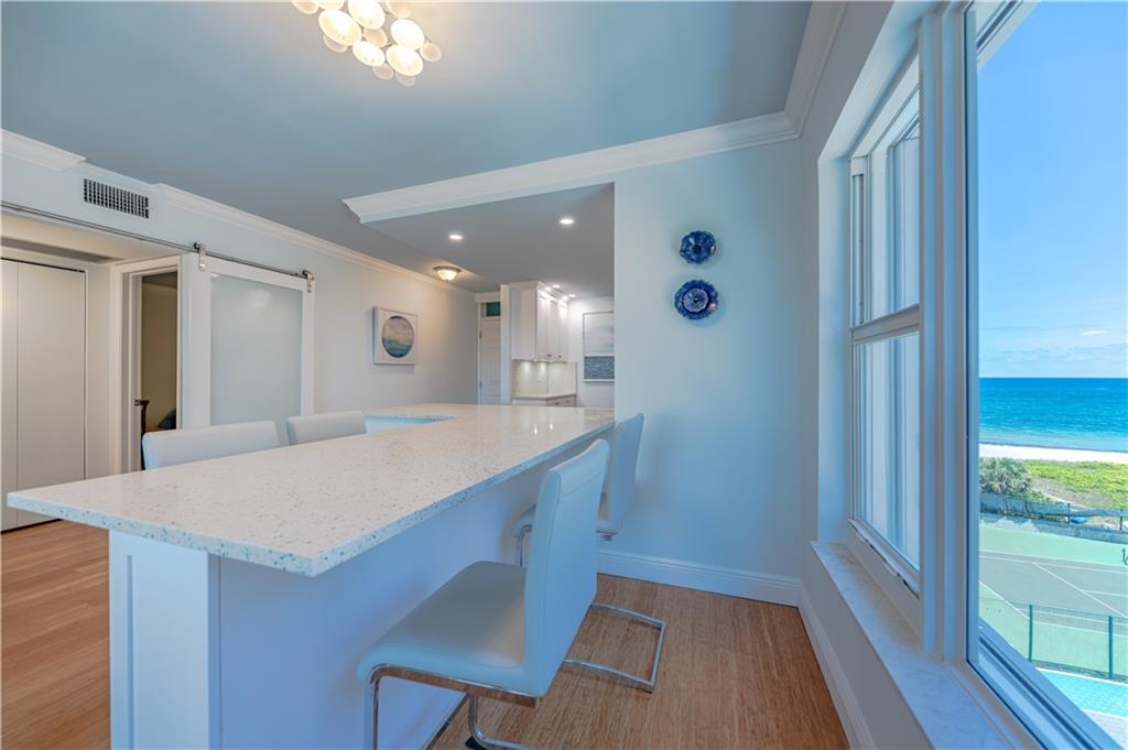 Absolutely stunning corner unit with direct ocean and intracoastal views. This beautifylly remodeled 2 bedroom, 2 bath unit has been impecably renovated and has in unit washer and dryer. (Bosch) A wrap around balcony with breath taking views of the beach, the intracoastal and sunsets to take your breath away. Unit features bamboo flooring, custom cabinets and closets, new ac (2022), quartz counter tops, complete renovation (2019), storage closet, monthly condo fee ($843.00) includes hot wire internet and service for 2 tv's. Double storm protection as unit has all impact windows and doors, and balcony shutters. This quaint 50 unit building is well managed and this unit comes with one assigned surface parking space and plenty of guest parking. Plenty of shopping & restaurants nearby in LBTS