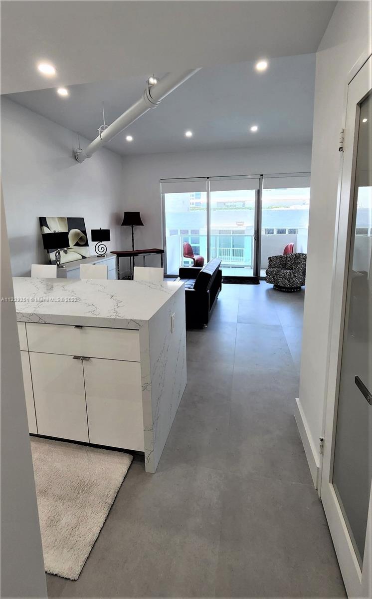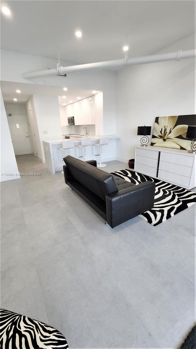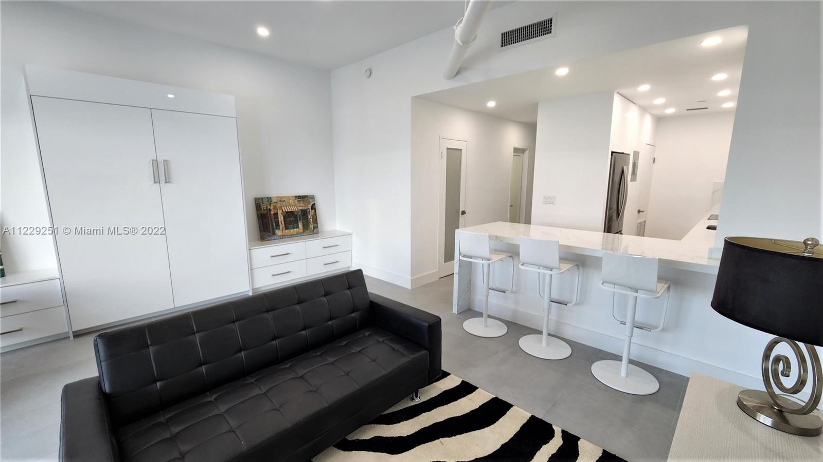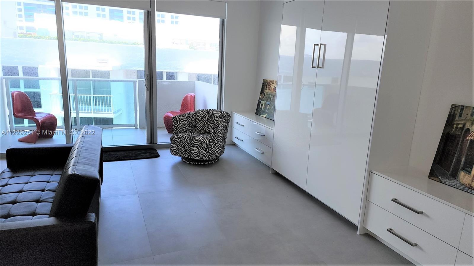 Spectacular renovation! Only on the PH level is it possible to elevate the ceiling to a soaring height of 10'! This industrial-chic studio will make the perfect pied-a-tierre, seasonal home or full-time residence. The open kitchen offers gleaming cabinets to the ceiling and a gorgeous quartz waterfall counter. Porcelain floors throughout with the look of concrete. Beautiful new bathroom. New electrical panel. Hurricane impact doors lead to the balcony with views of Biscayne Bay. Full size Bosch WD in the walk-in closet. Built in Murphy bed. Cable/Internet provided by the bldg. Amenities include a lg fitness center overlooking the Bay, convenience store, community room, valet, BBQ area, pool, spa and bike storage. One of a kind unit in a great building!