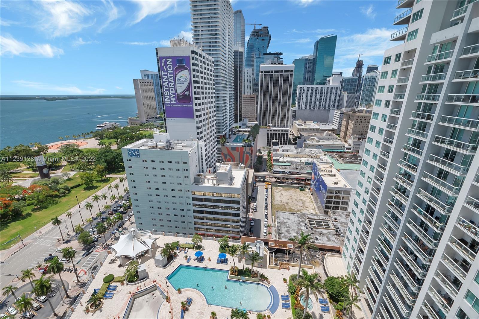 Luxurious resort style condominium. One bedroom unit on high floor with spectacular views of Biscayne Bay. Kitchen is fully equipped with stainless steel appliances, European cabinetry and granite countertops. Bathroom features separate spa tub & glass enclosed shower. Large balcony accessible from the bedroom and living area. Building features, four pools, spa, jacuzzi, sauna, steam room, fitness center, business center, & 24/7 concierge. Near Museums, Arsht Center for the Performing Arts, Arena, Restaurants, Parks and more. Building allows short term rentals.
