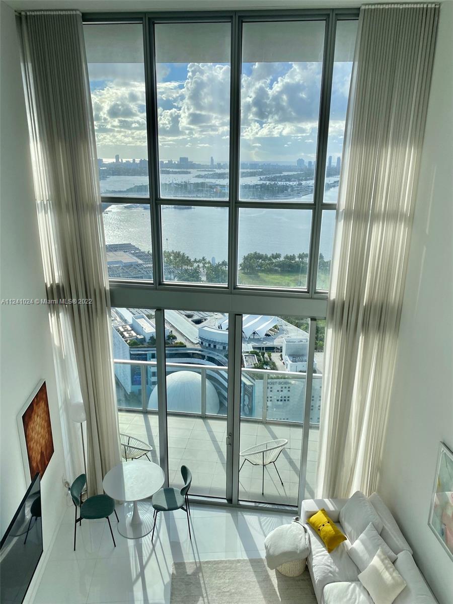 Modern 2-story Loft style 1Bdr + Den | 2 Bath in luxury building. Den closed and used as an office. Unobstructed views of Biscayne Bay- Port of Miami. 20" high ceilings and oversized balcony. Railing was updated to Glass on 2nd floor & stairs. Top of the line appliances, 5 star amenities including Valet, 24hr doorman, lounge, Sky Pool Deck & Spa. Rented until 06/21/23.