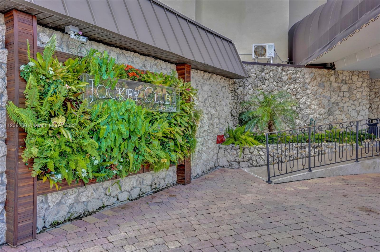 You'll be mesmerized by the incredible panoramic water views over Biscayne Bay from this tastefully remodeled 2 bedroom condo in the gated Jockey Club community. This unit is located in the ideal stack line on the point so close to the shimmering bay waters you feel like you can touch them. Open floor plan concept with an upgraded kitchen boasting solid wood cabinets and granite counter tops. Both bathrooms have been elegantly updated as well. Wood floors in living areas. Smooth, slick ceilings, custom light fixtures and crown moldings really add a designer's touch. Large walk-in closet. Accordion hurricane shutters. Relax at the pool deck right along the bay. Centrally located - close to shopping, restaurants and more. Must own for 24 months before renting.