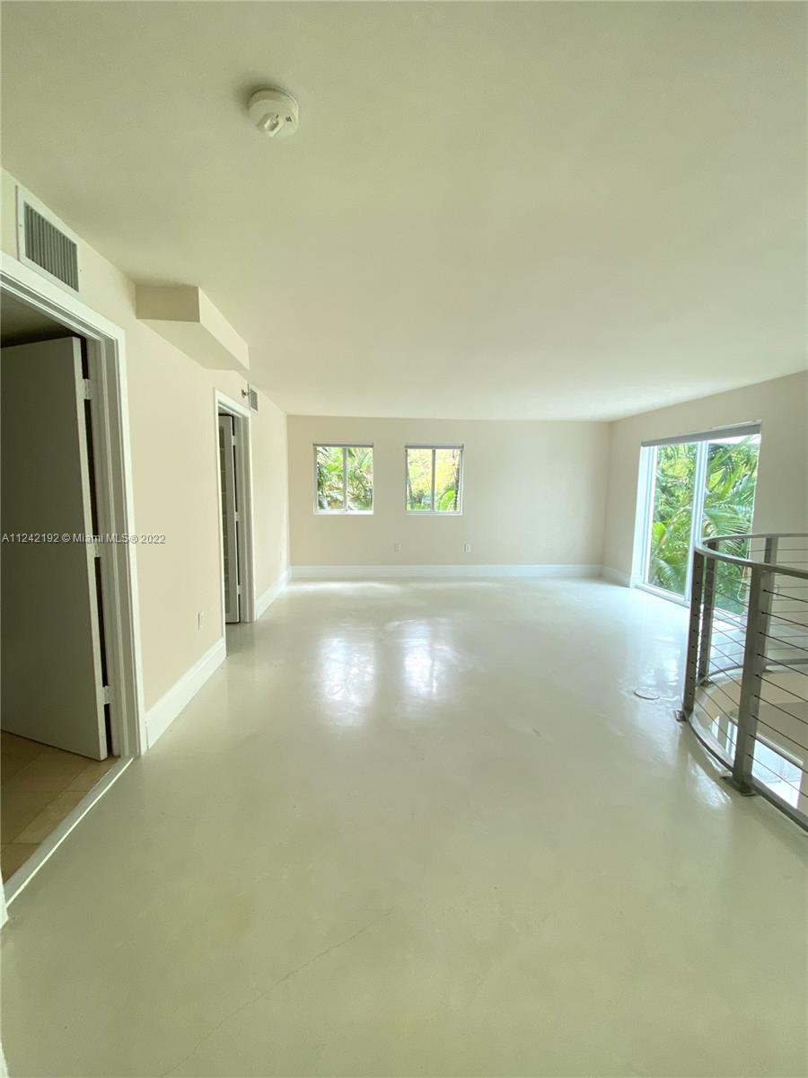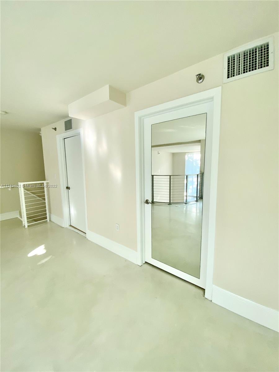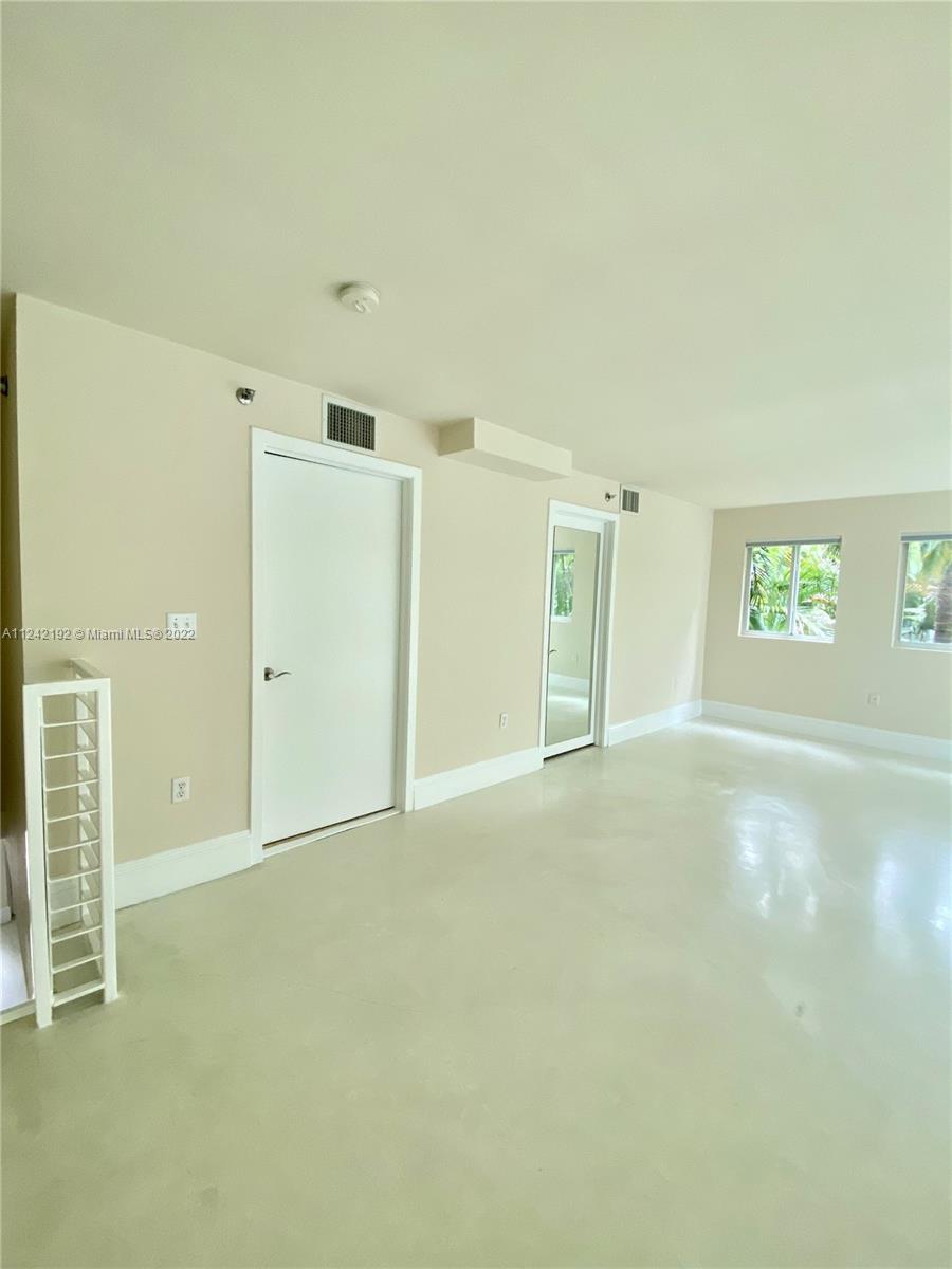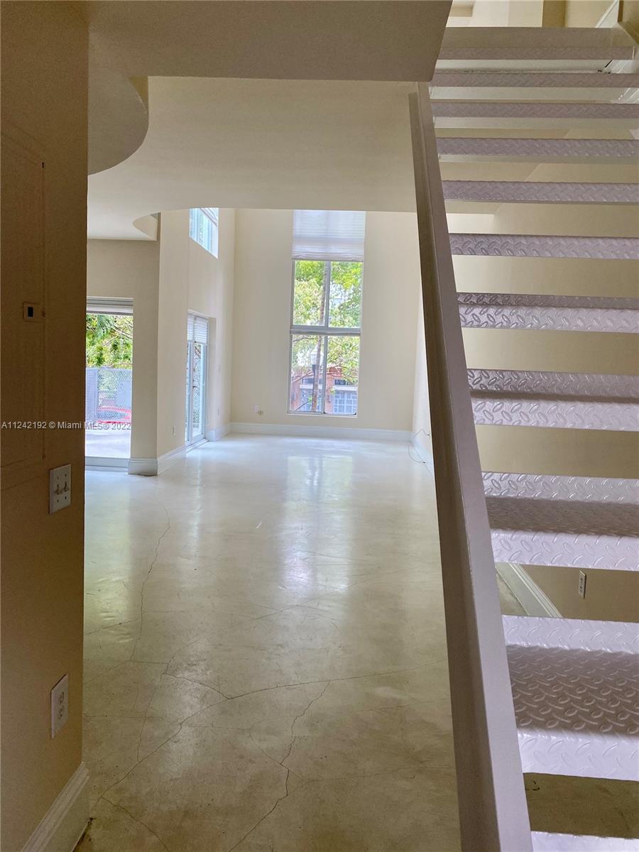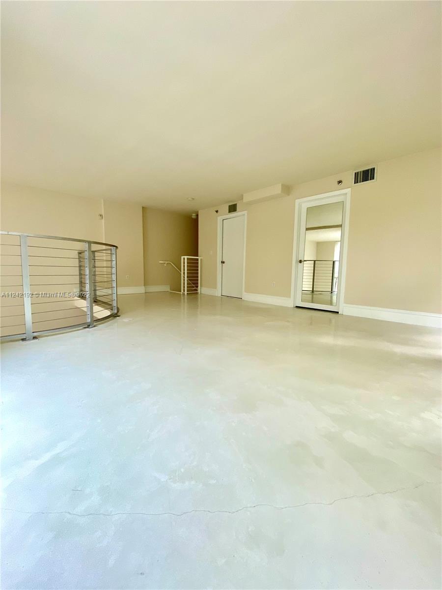 Spacious loft style on 2 levels, master bedroom and bath upstairs, featuring concrete floor, private balcony , stainless steel appliances, 2 parking garage spaces, common pool