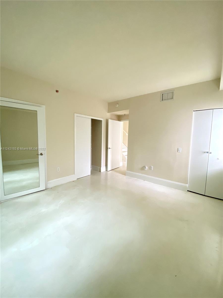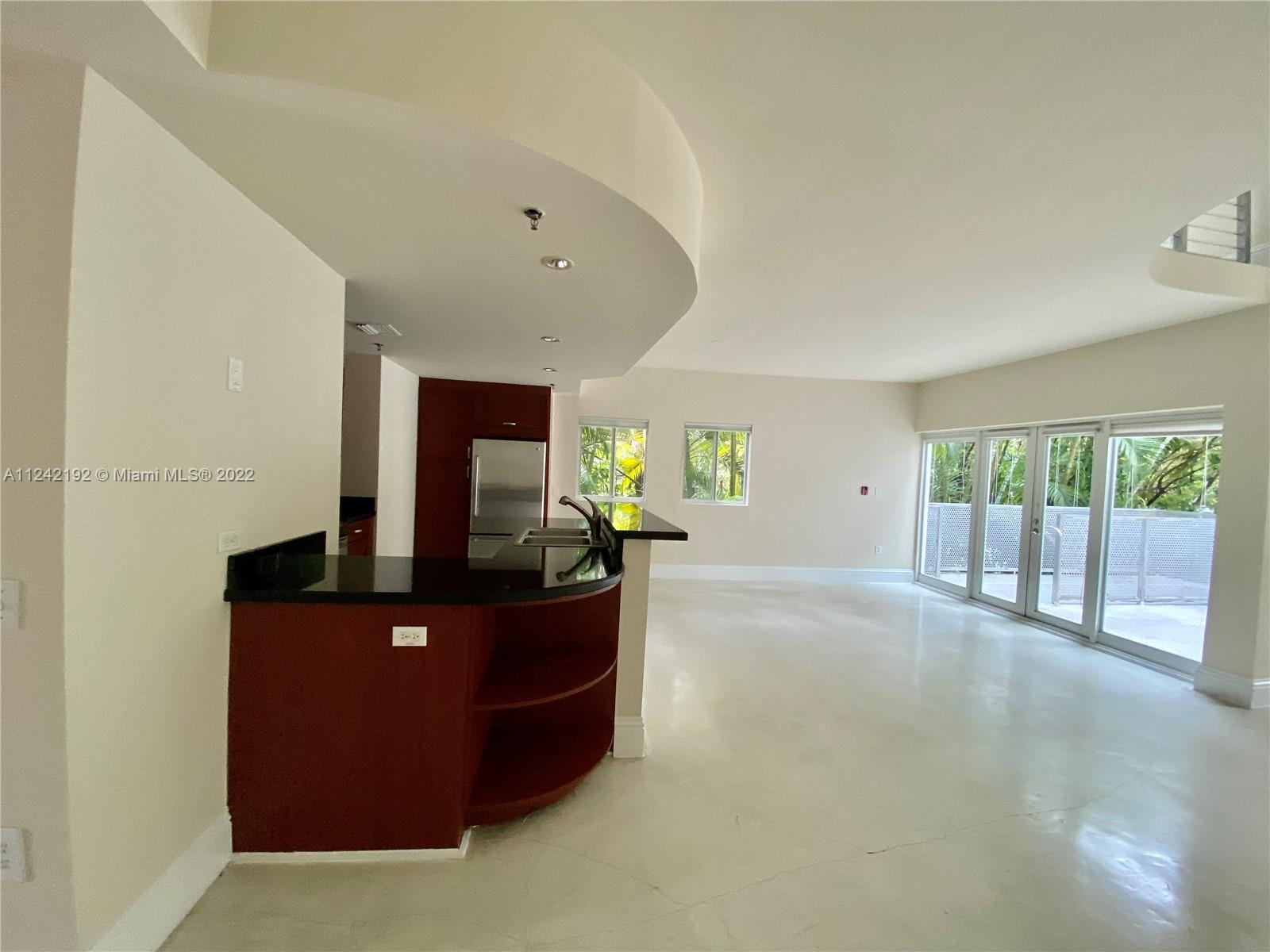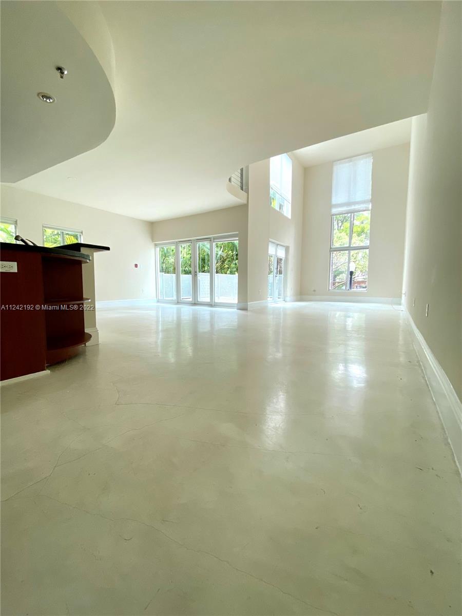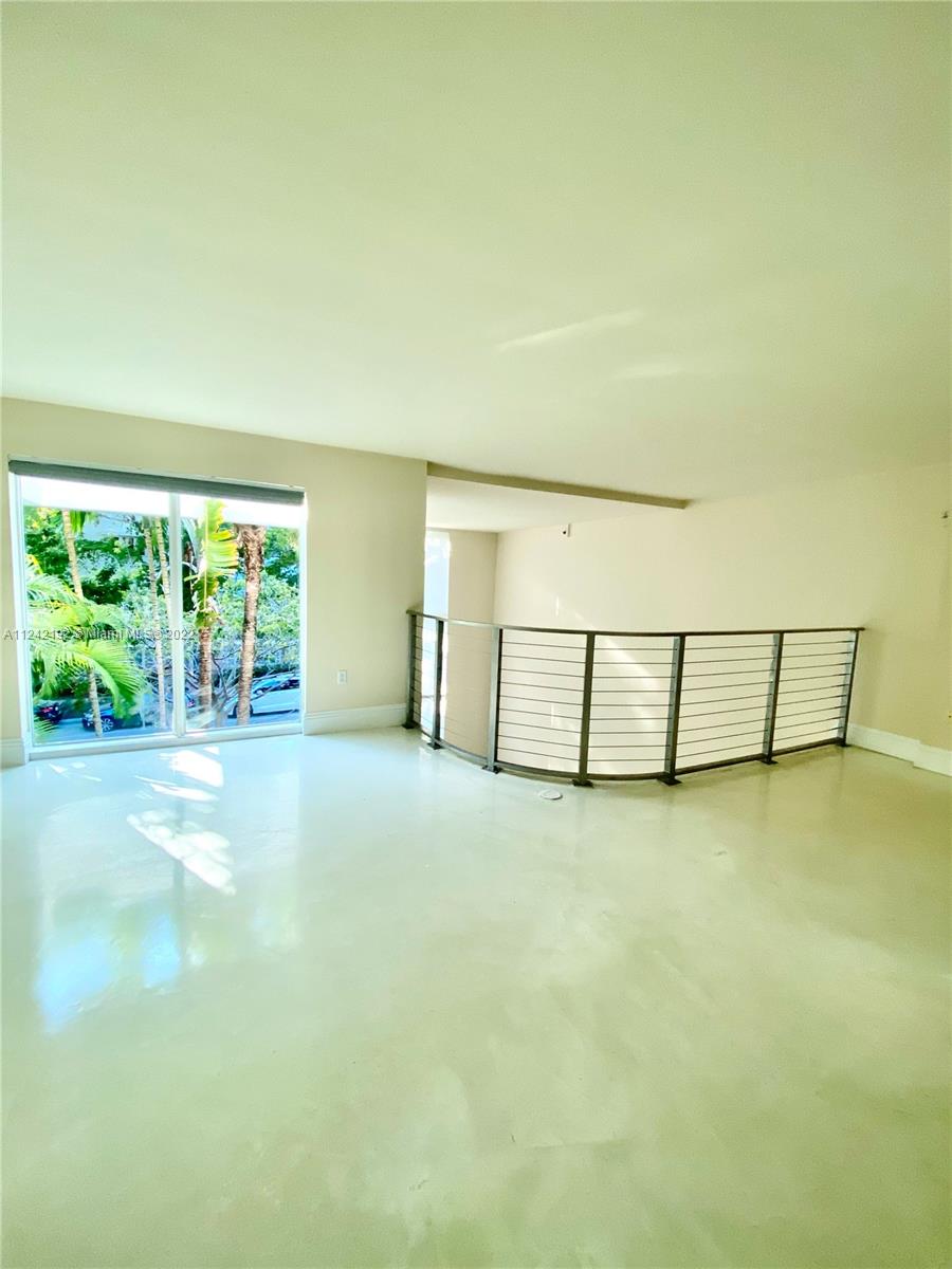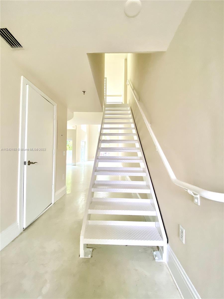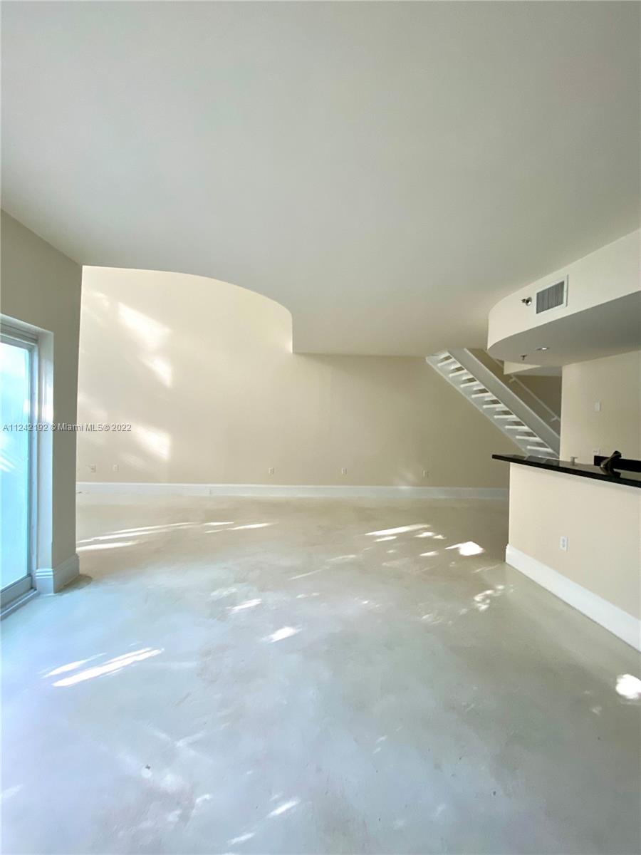 Spacious loft style on 2 levels, master bedroom and bath upstairs, featuring concrete floor, private balcony , stainless steel appliances, 2 parking garage spaces, common pool