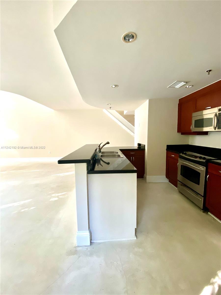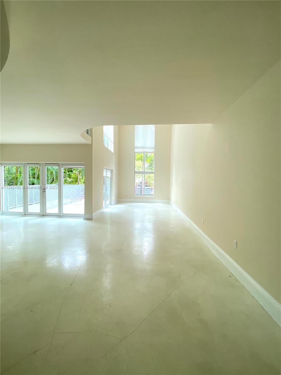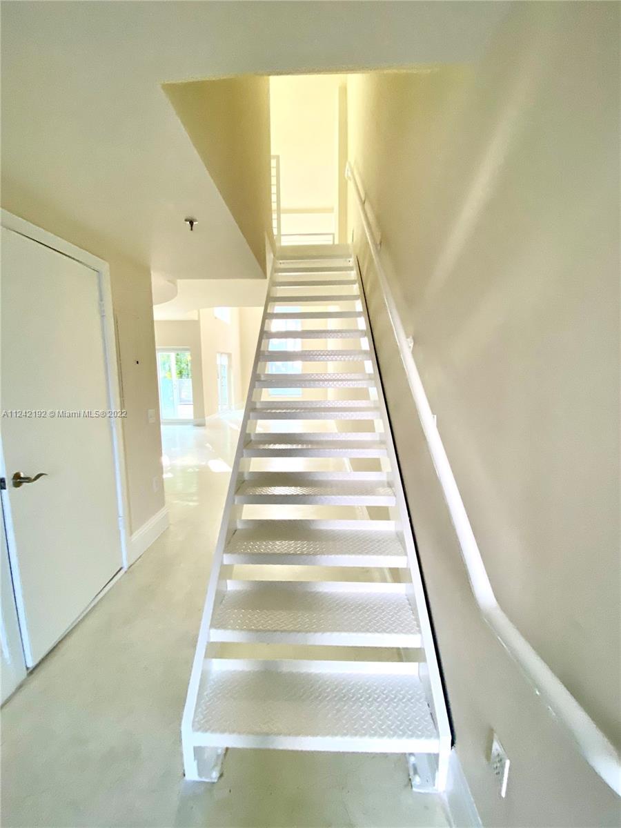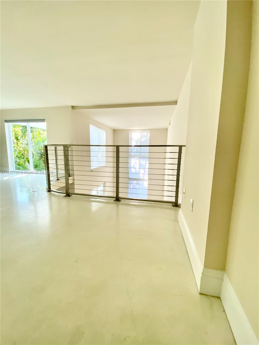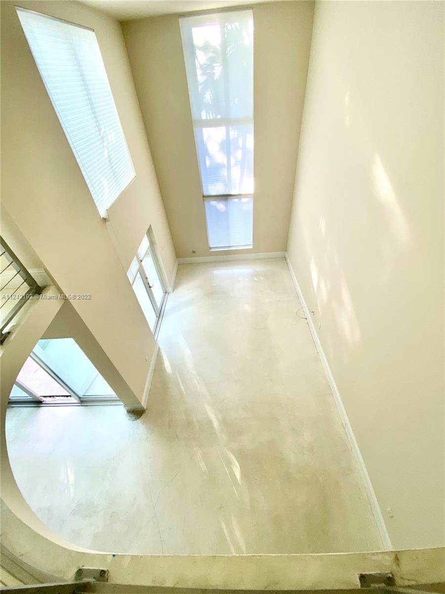 Spacious loft style on 2 levels, master bedroom and bath upstairs, featuring concrete floor, private balcony , stainless steel appliances, 2 parking garage spaces, common pool