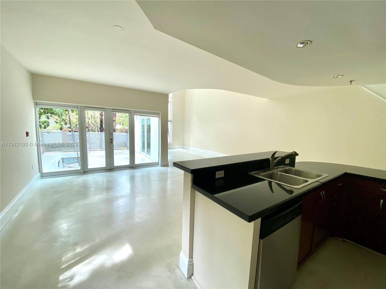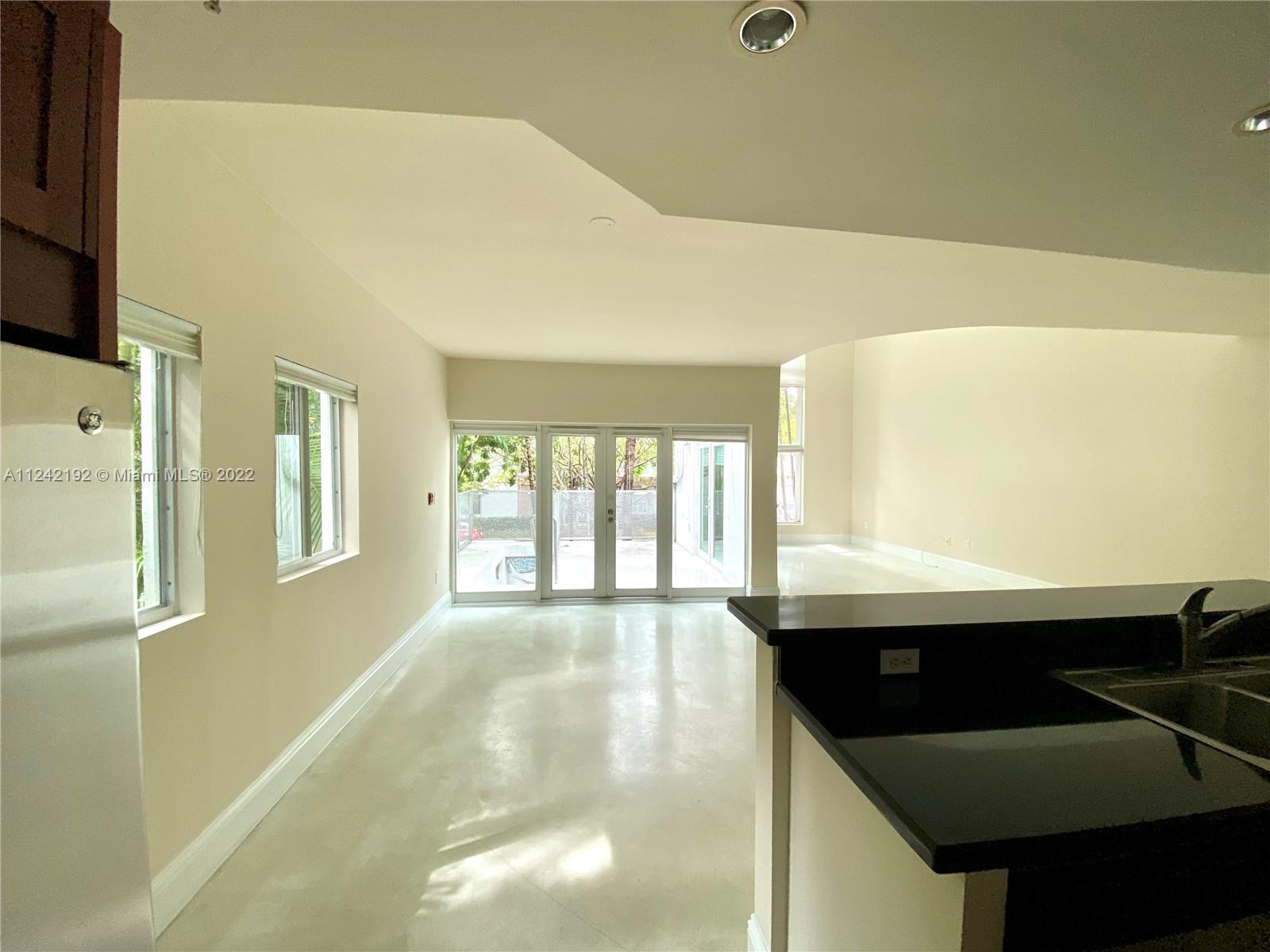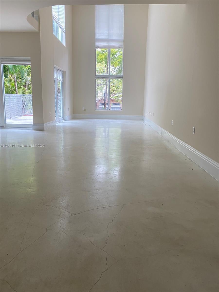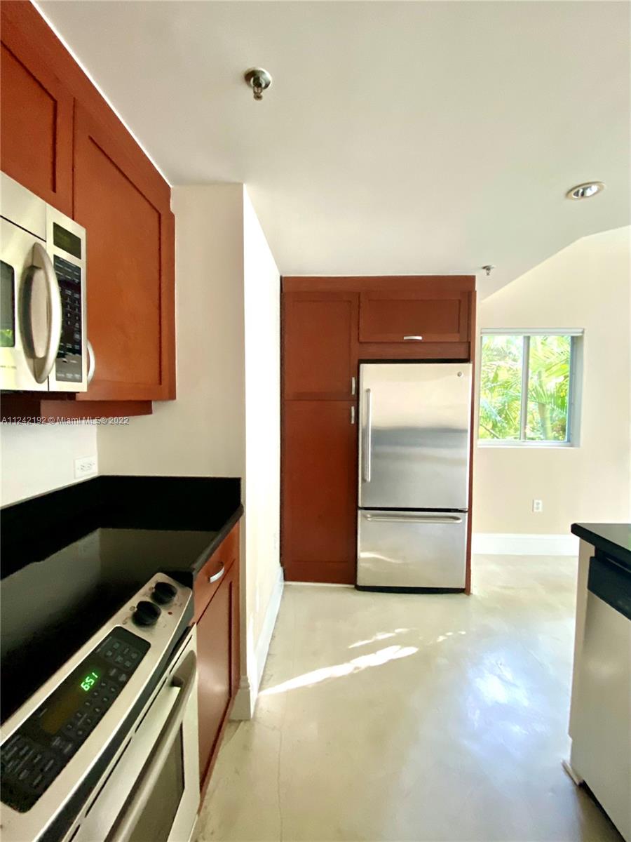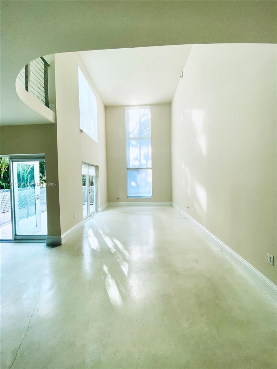 Spacious loft style on 2 levels, master bedroom and bath upstairs, featuring concrete floor, private balcony , stainless steel appliances, 2 parking garage spaces, common pool